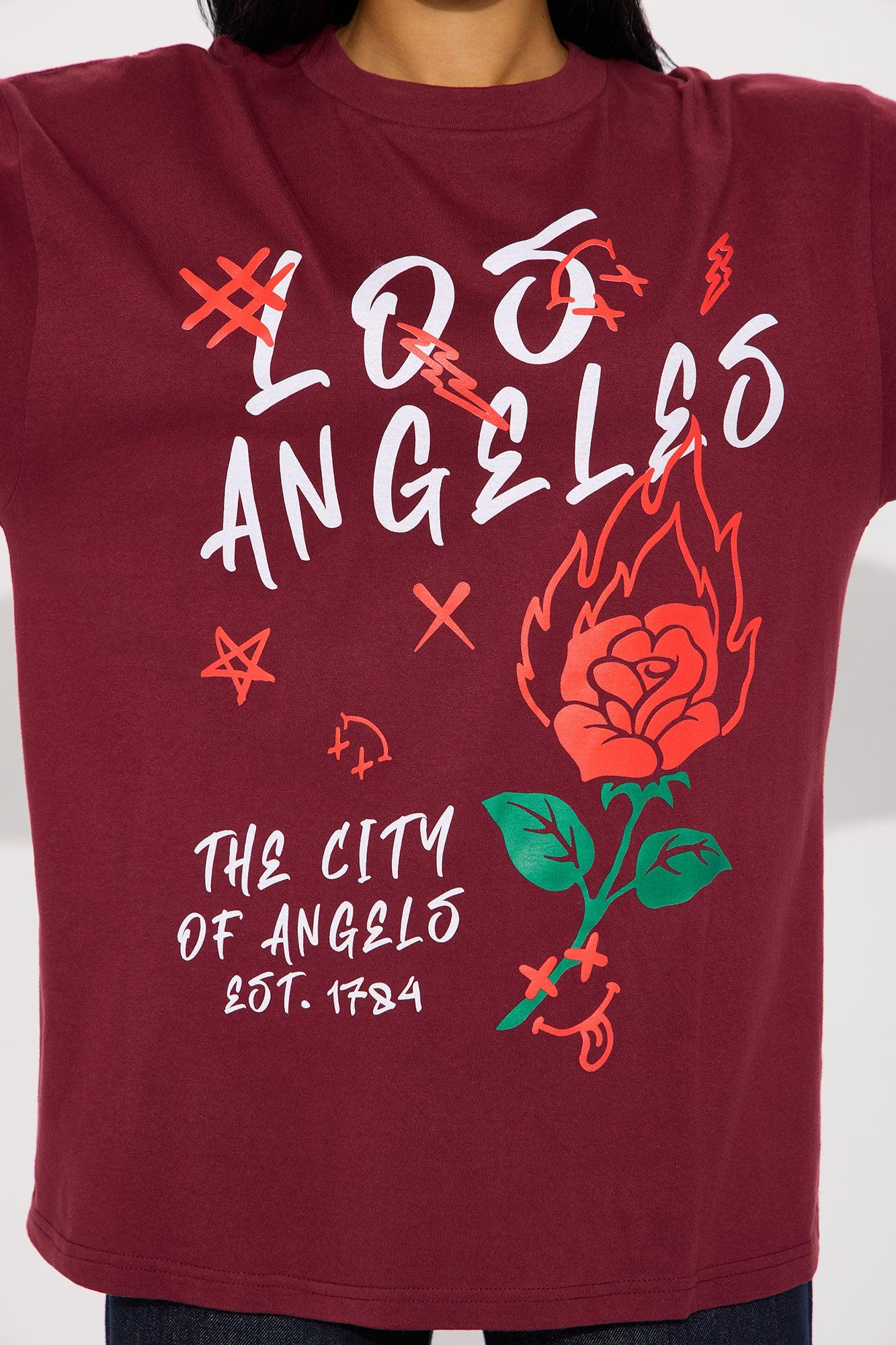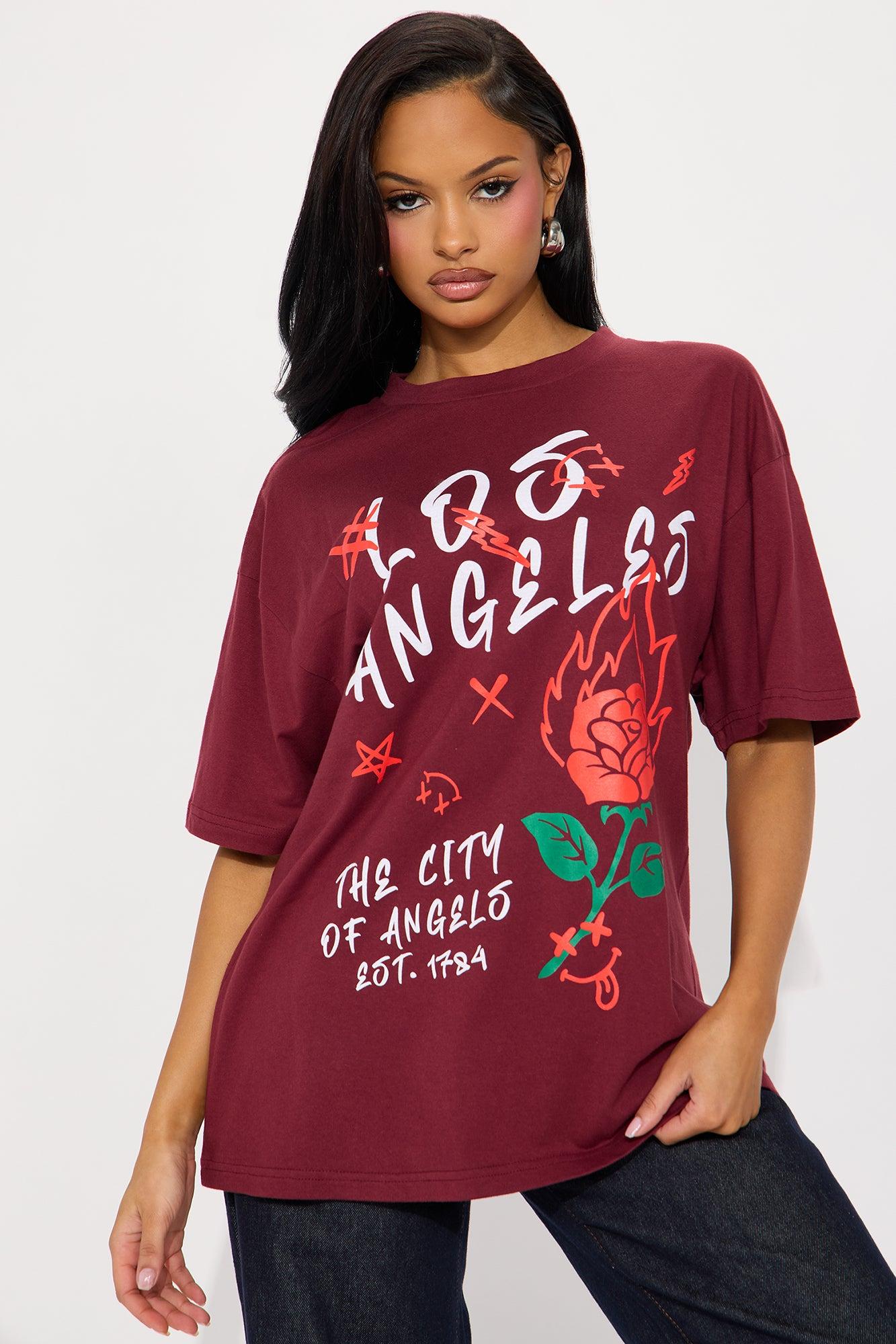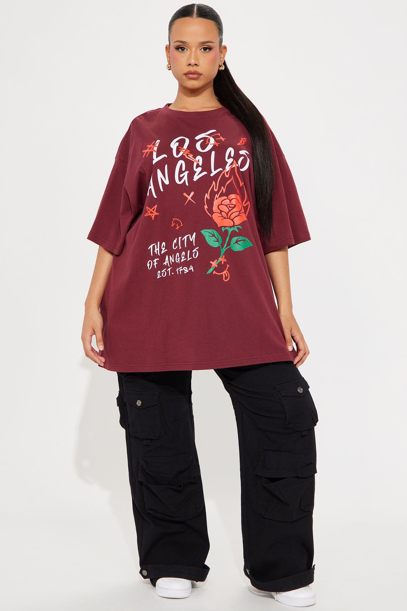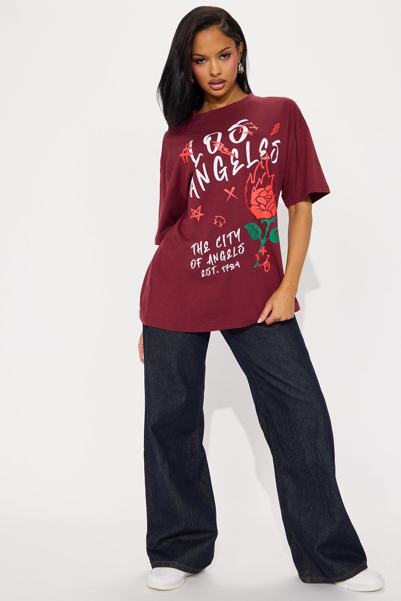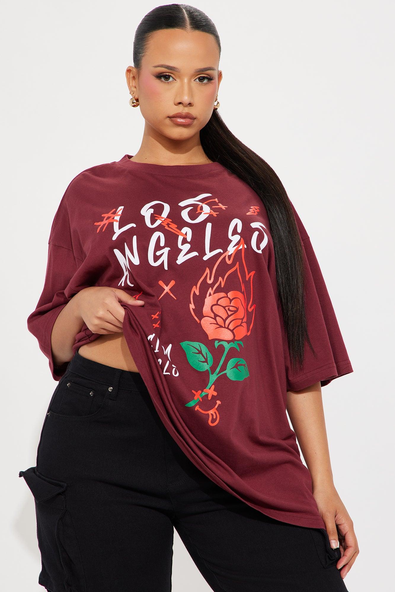 Available In Burgundy. Crew Neck Short Sleeve Front Screen Stretch 100% Cotton Imported