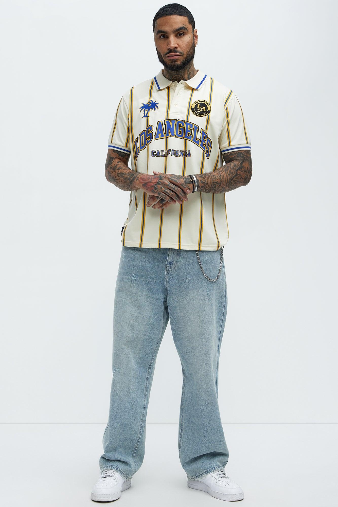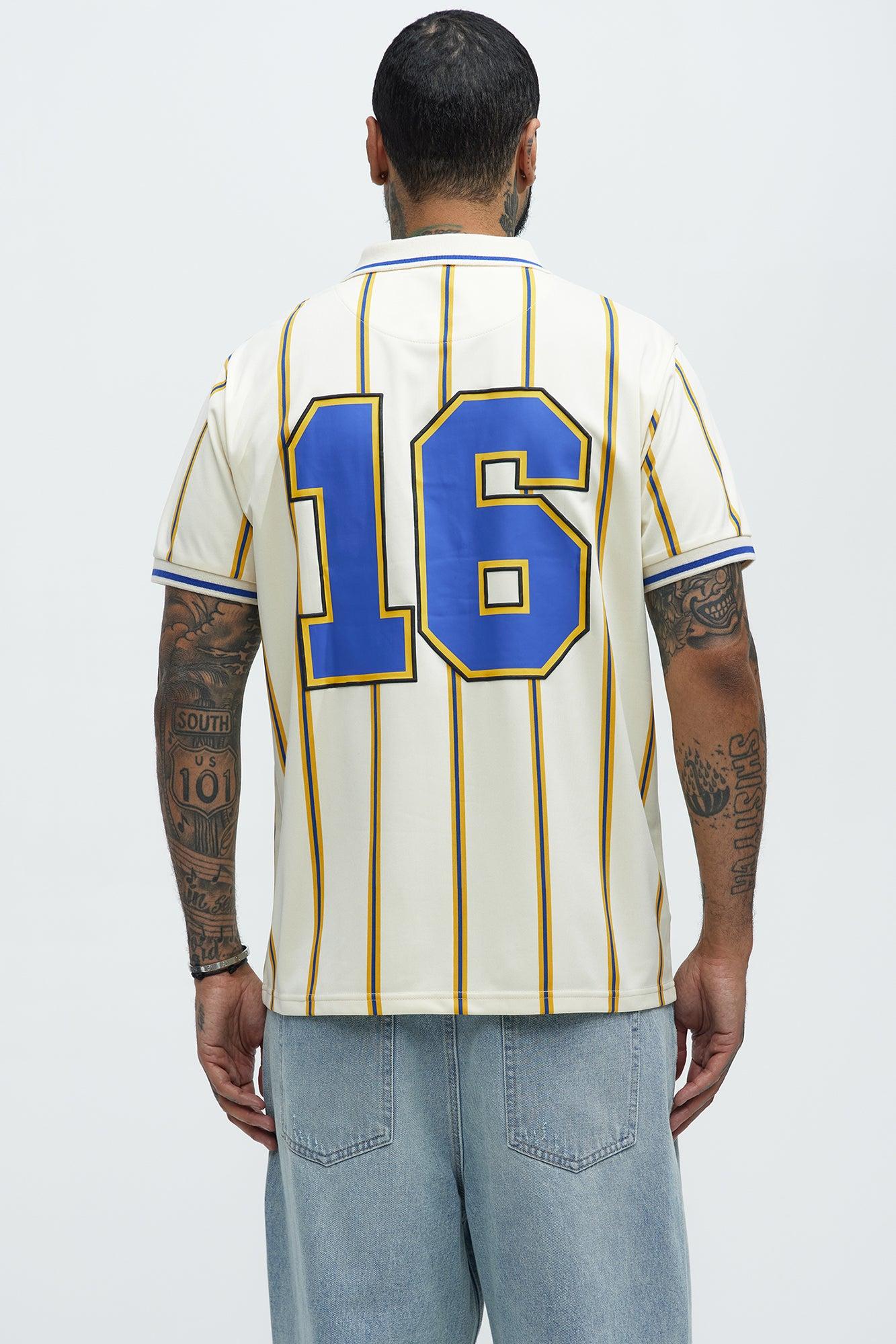 Available In Blue/combo. Button Down Collar Contrast Trim Striped Front Graphic Details Back Graphic 100% Polyester Disclaimer: Due To The Printing Process A Difference In Saturation May Occur. Each Garment Is Unique. Print Placement Will Vary. Imported