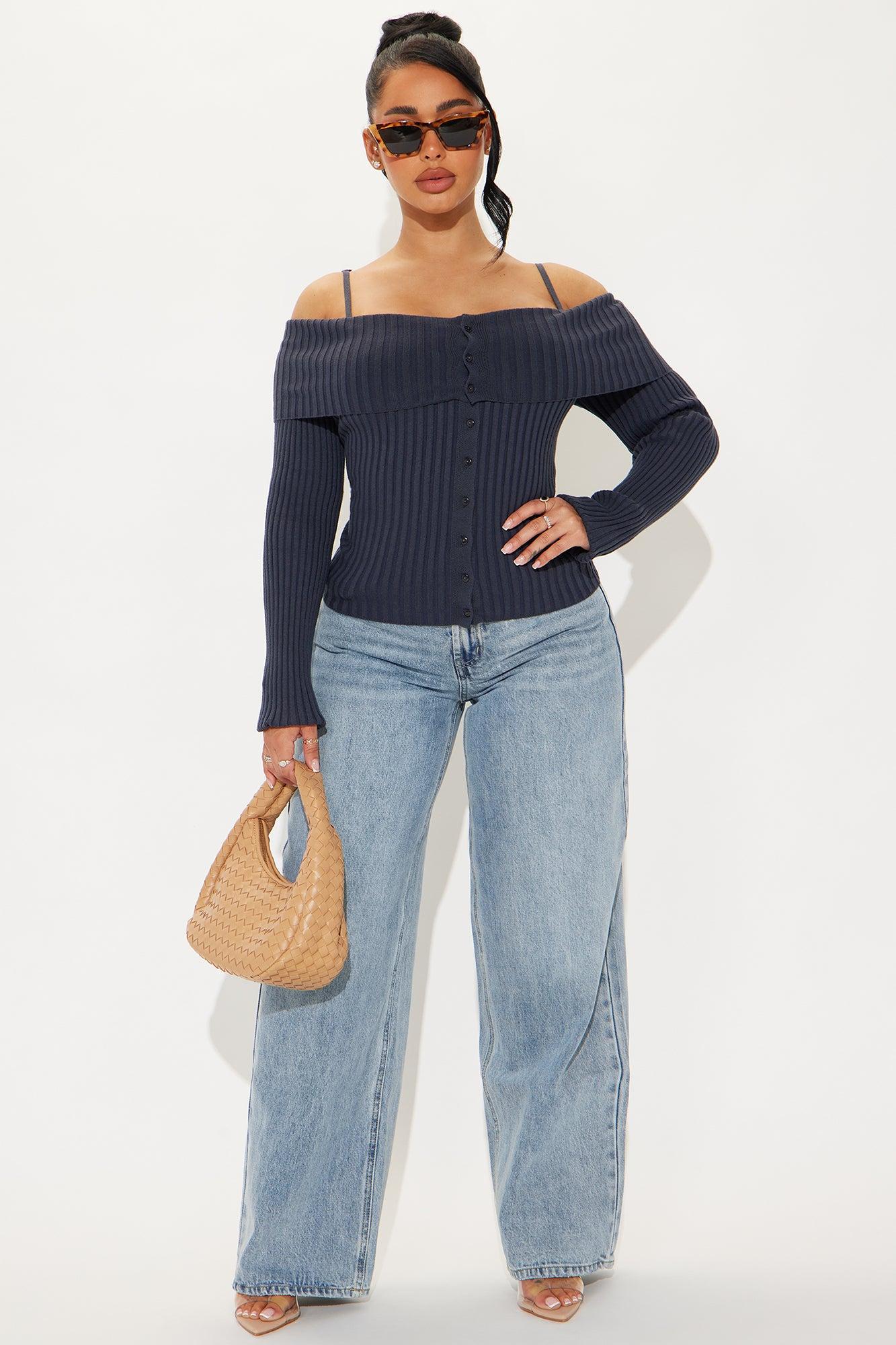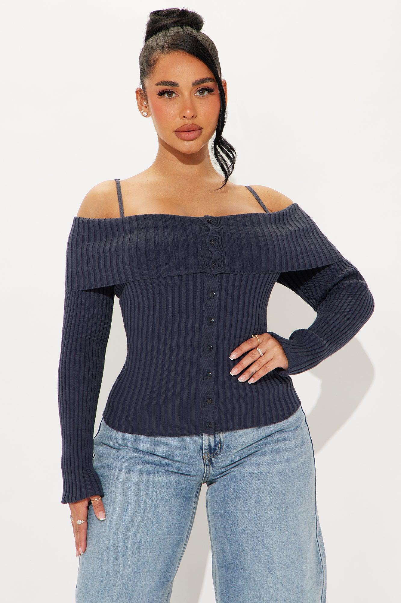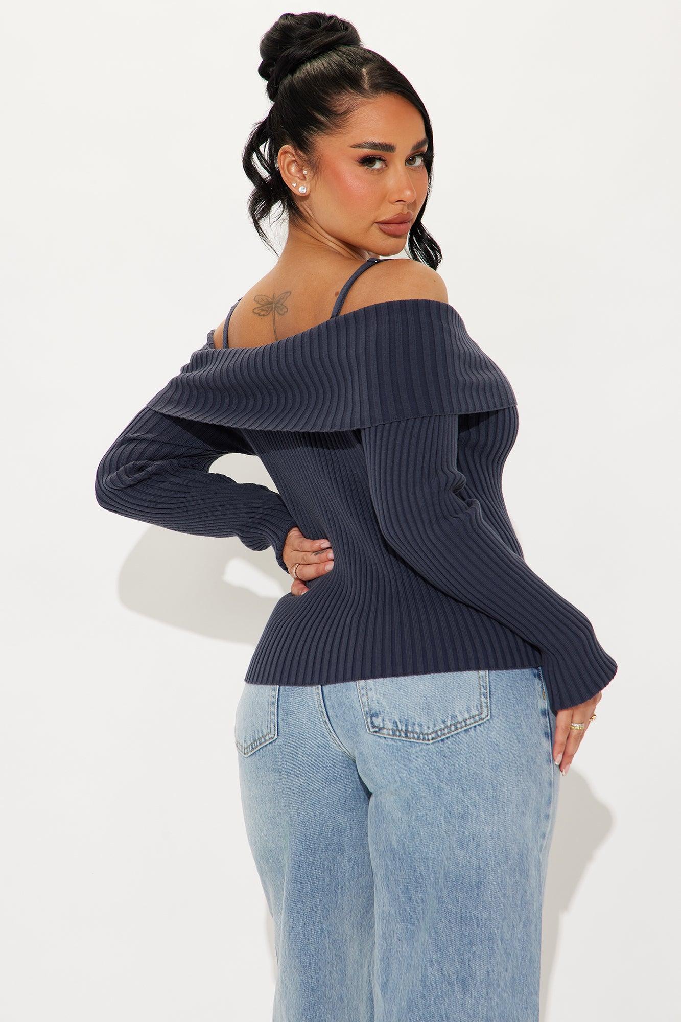 Losing It Off Shoulder Sweater - Navy