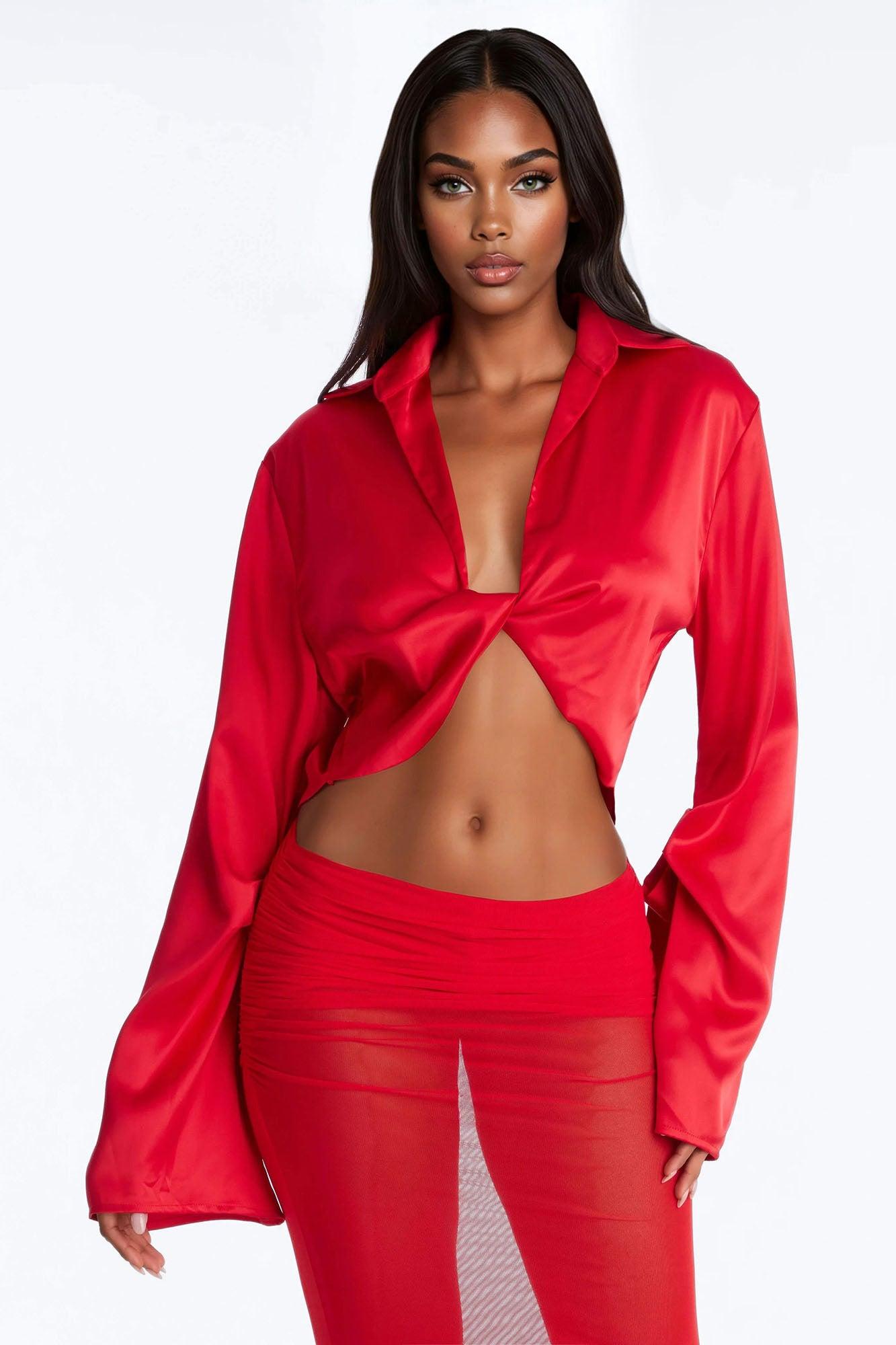 Lost In Allure Sheer Maxi Skirt Set - Red Female
