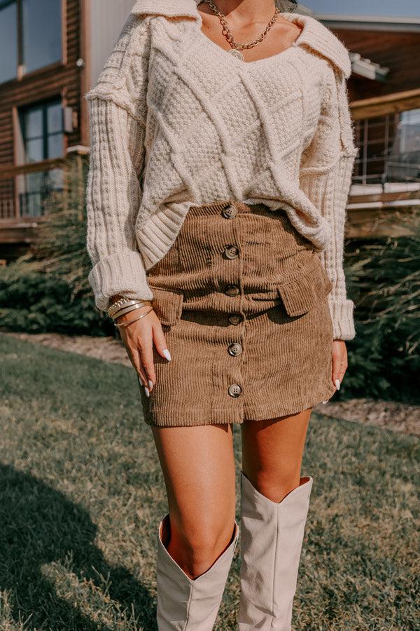 - For a stylish autumn vibe pair this skirt with your favorite knit top or sweater! - Unlined corduroy material - A waistline with an elastic back - A buttoned front - Faux pocket slits - A figure flattering silhouette that ends in a straight mini skirt length hemline Measurements S : Hip 30", Length 17", Waist 26-28". M : Hip 32", Length 17.5", Waist 28-30". L : Hip 34", Length 18", Waist 30-32".