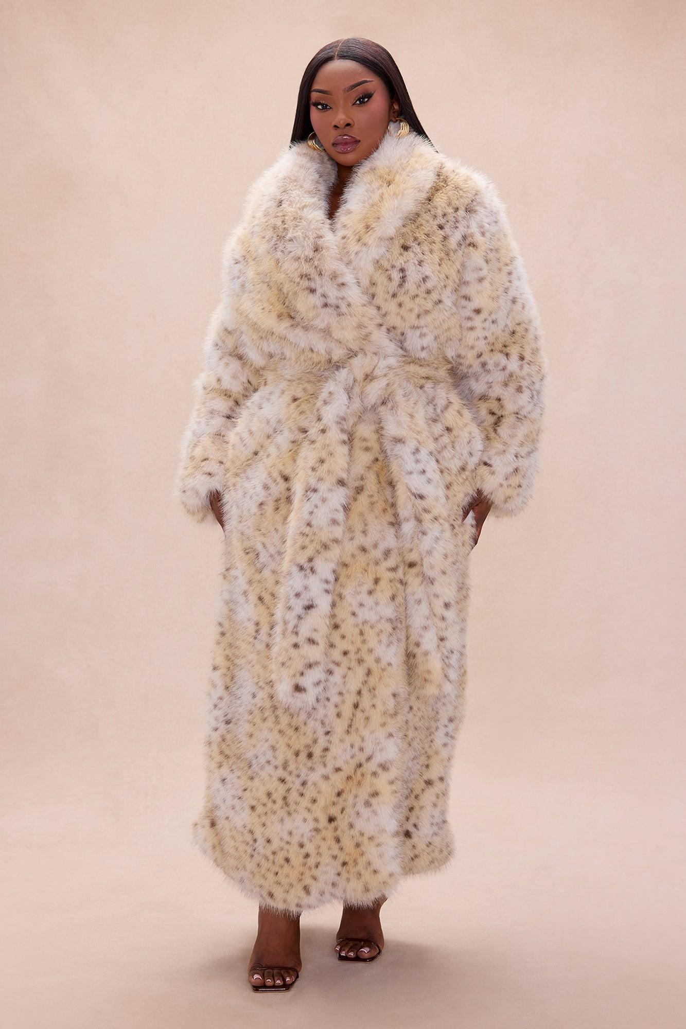 Lottie Belted Faux Fur Coat - Cream/combo Female