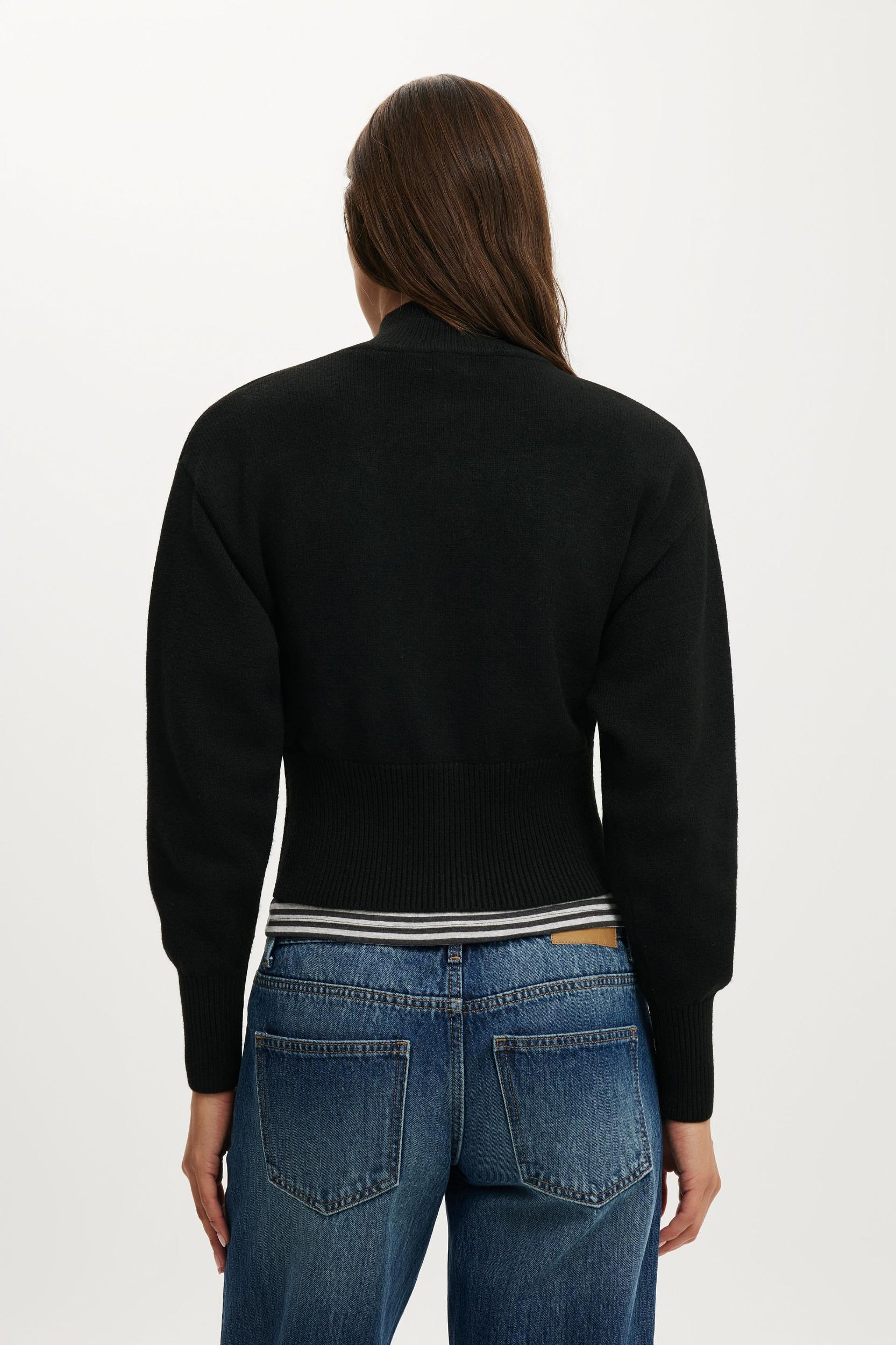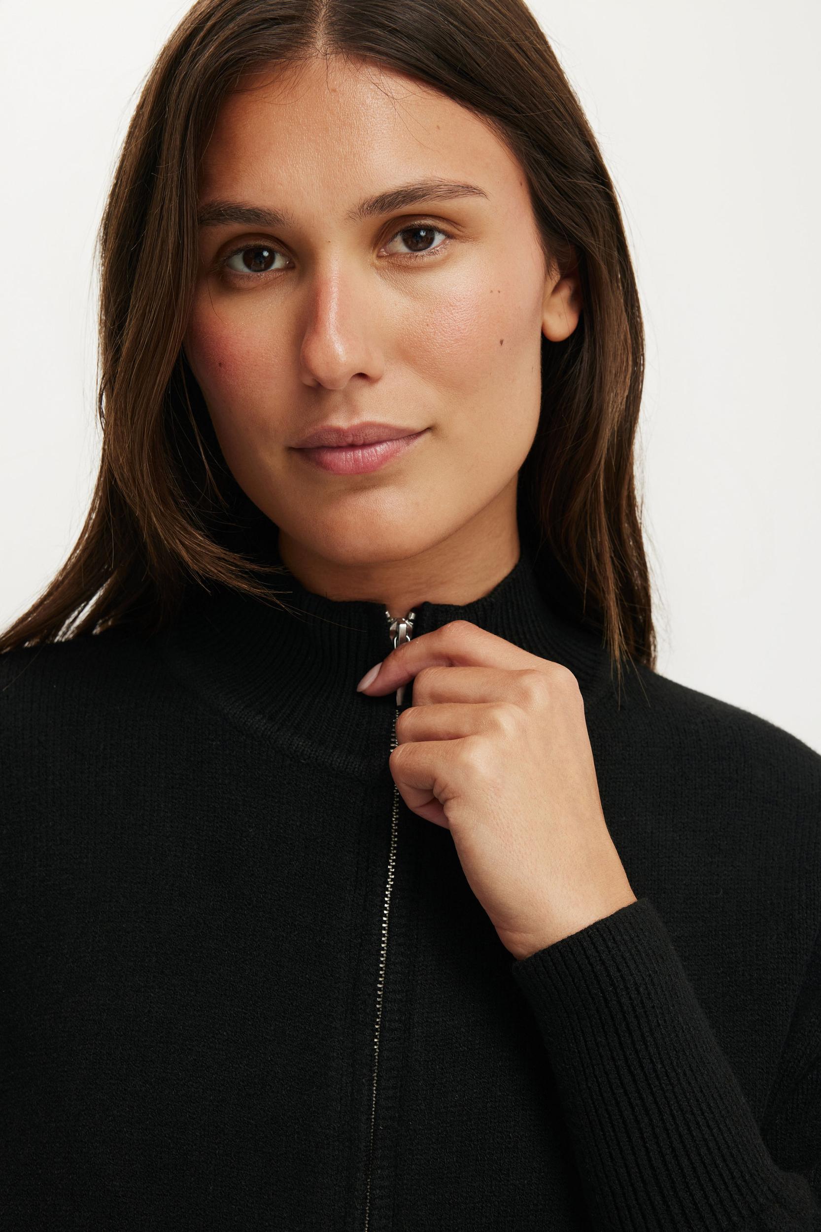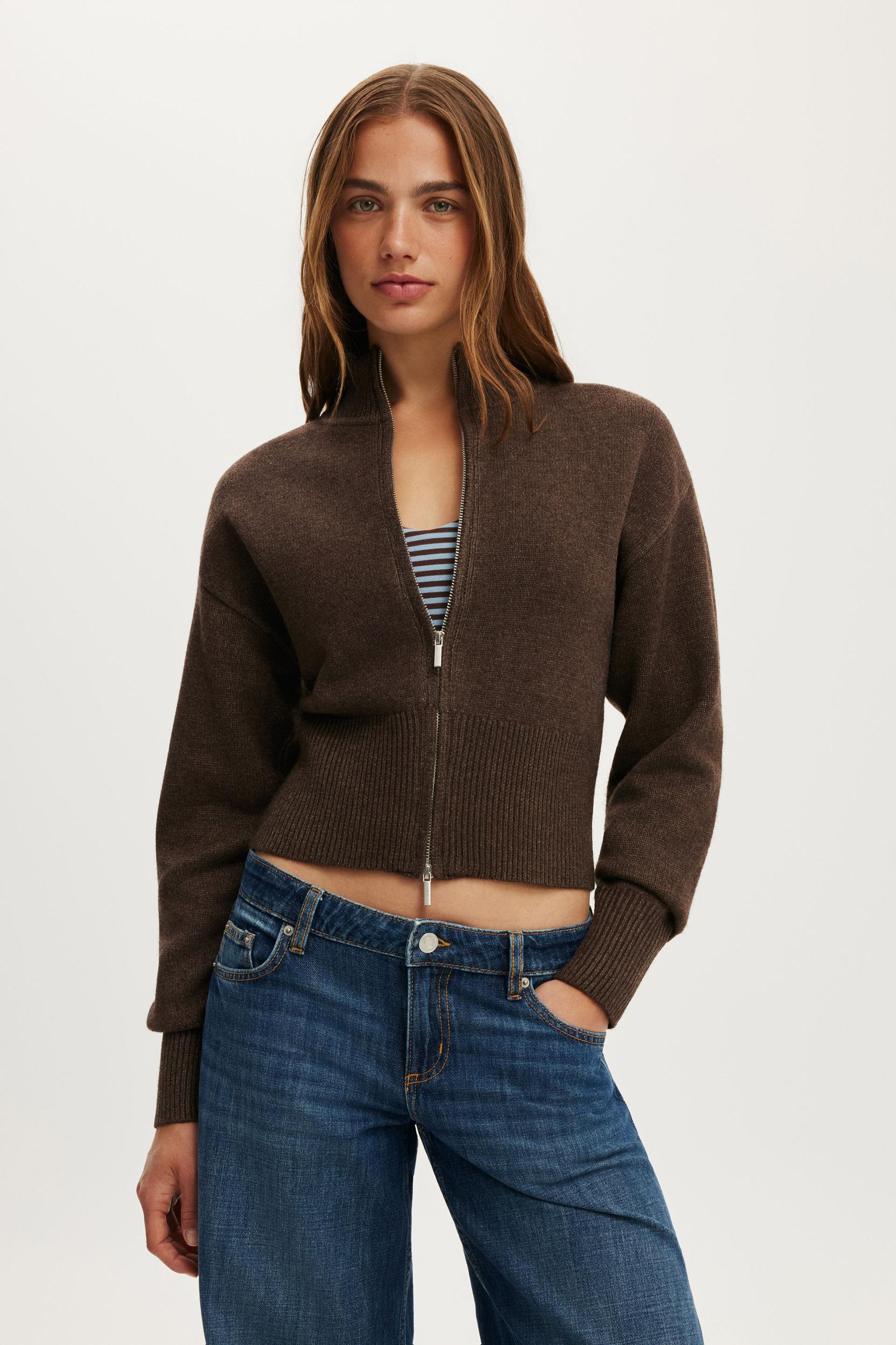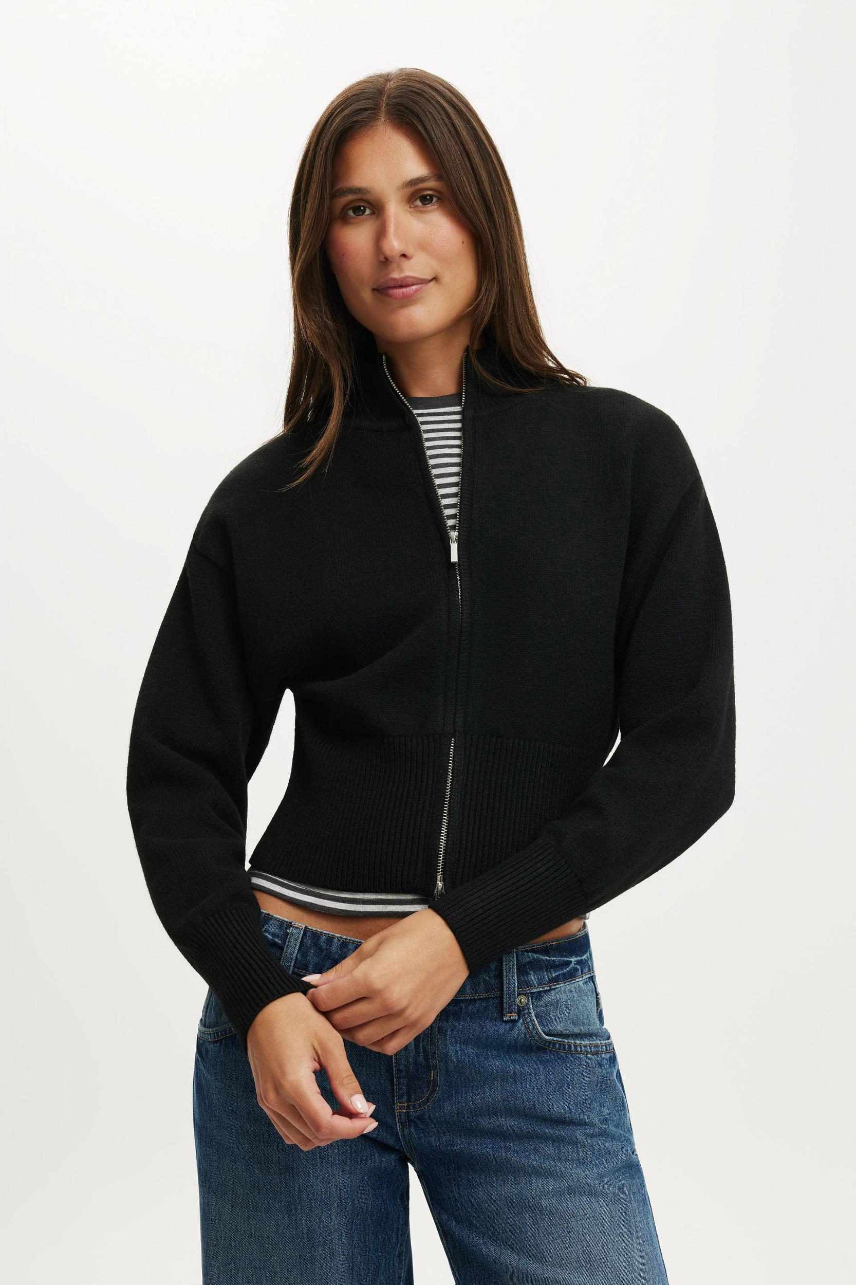 This soft, cosy bomber knit features a cinched waist for a flattering fit. Easy to style with low-rise denim or fleece, it's the kind of throw-on layer that feels comfy, current and very now.