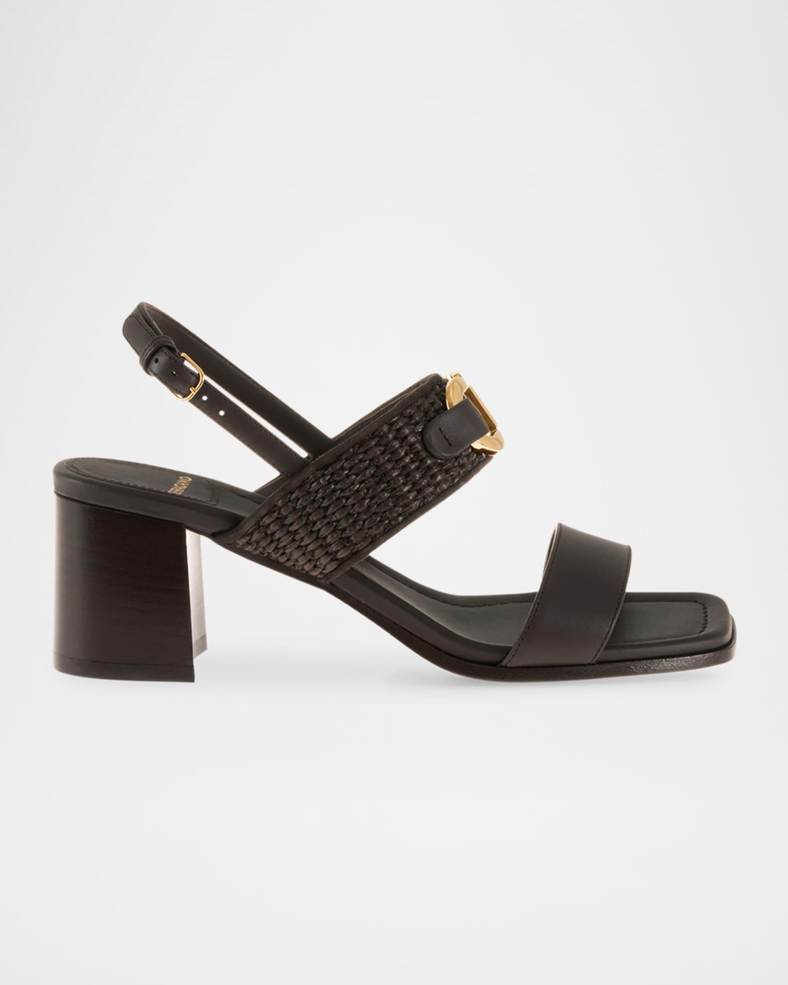 Lou Gancini Bit Raffia Leather Sandals