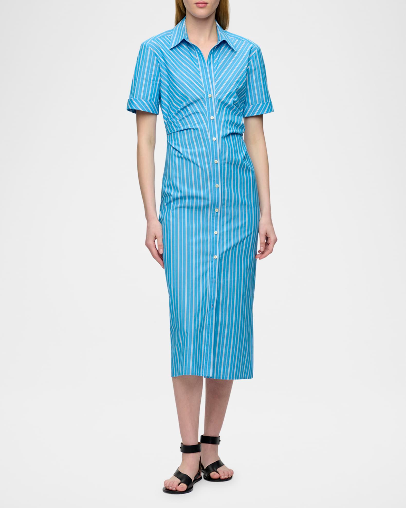 Lou Pleated Striped Cotton Midi Shirtdress