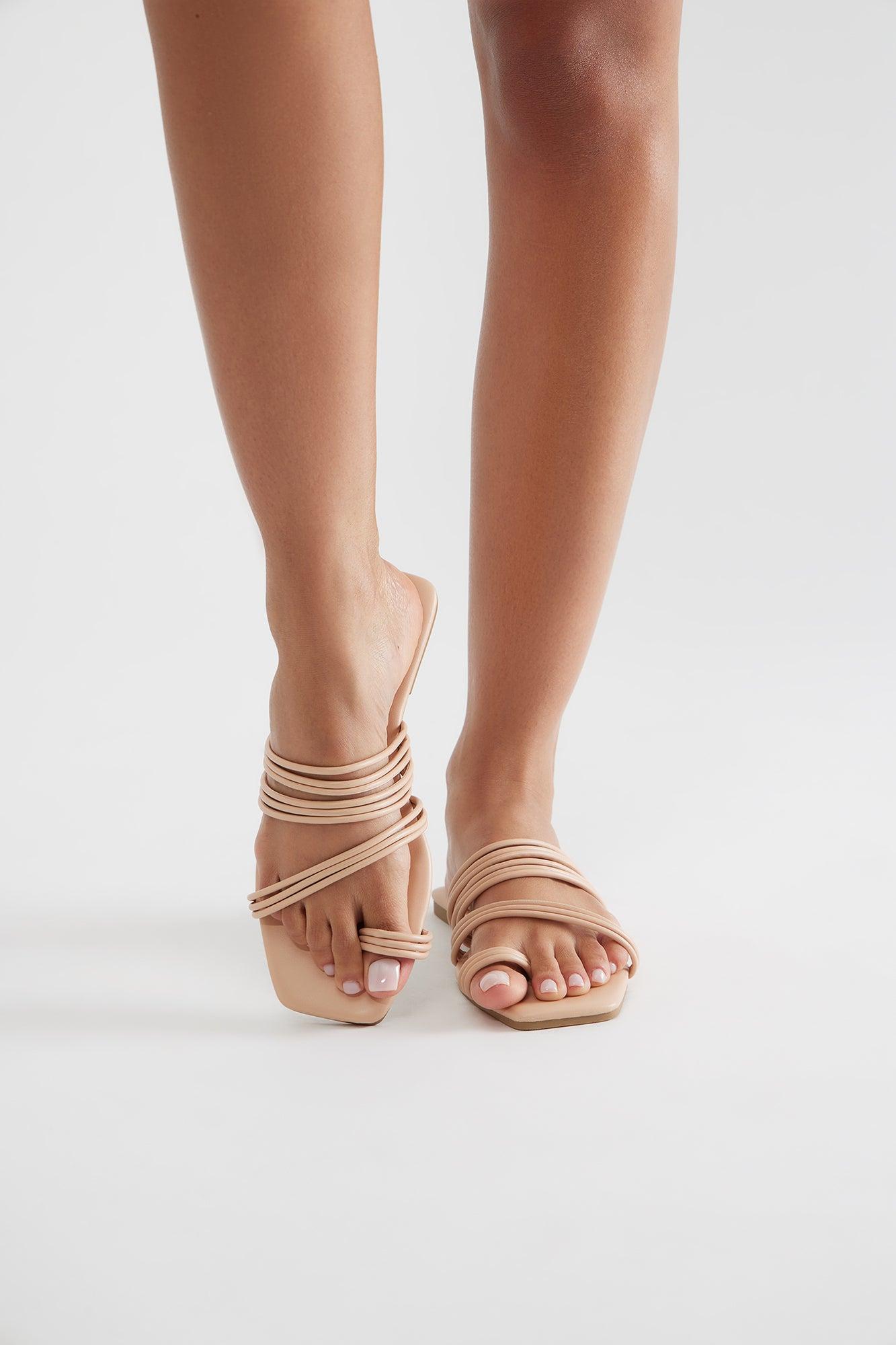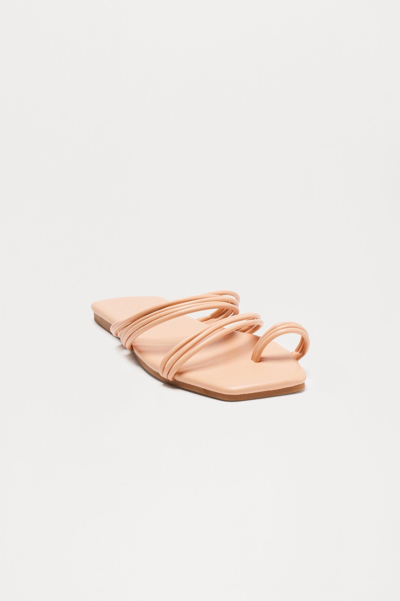 Available In Black, Camel, Silver And White. Flat Sandals Toe Ring Detail Square Toe Flat Heel Imported