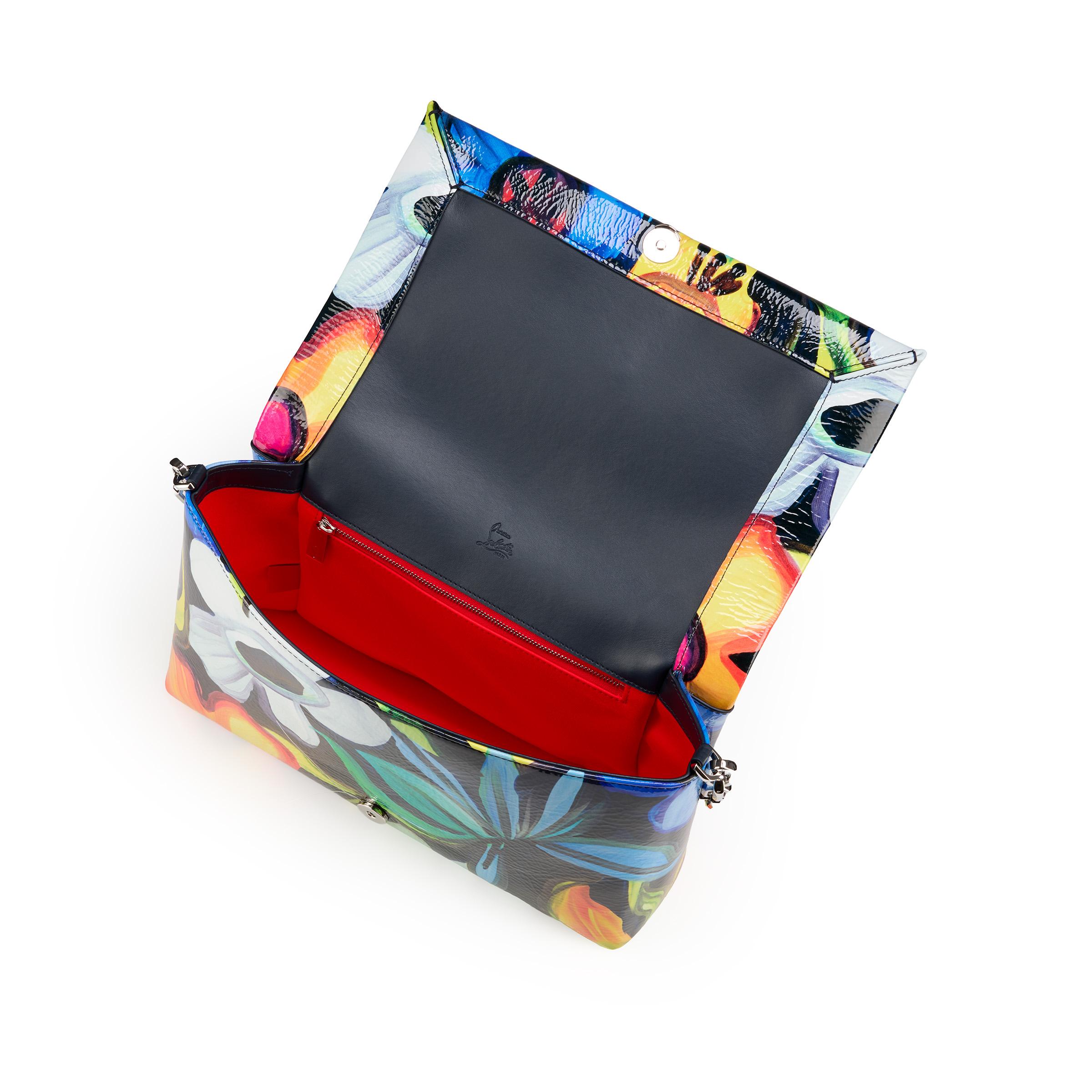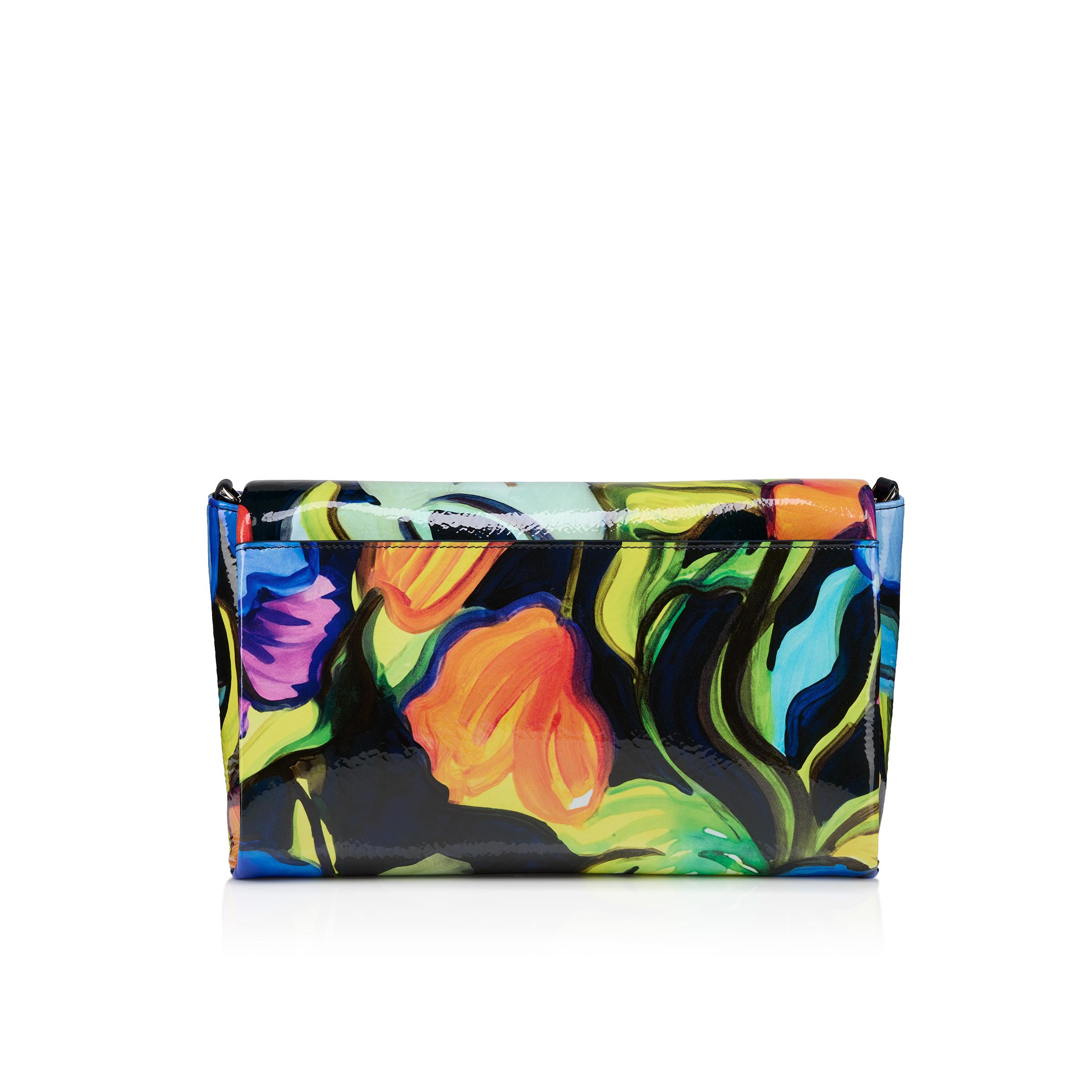 The Loubi54 soft shoulder bag in size large is an elegant model showcasing Maison Christian Louboutin's savoir faire. This timeless design in naplak patent leather bears a CL Mooncrest logo on the flap. It can be carried over the shoulder with its striking signature chain strap. This bag features a multicoloured Flower print. This material has a shiny and pleated effect which may cause slight variations between the photo and the product.