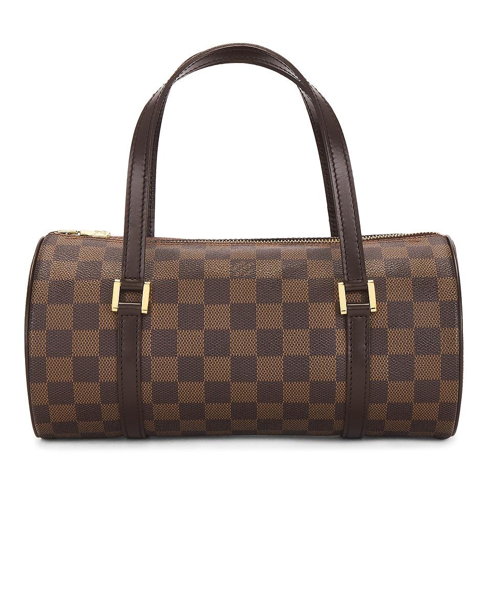/ Damier eben coated canvas with calfskin leather trim and leather lining / Made in France / Top zipper closure / One main compartment / Original dustbag included / Measures approx 10.5" W x 5" H x 5" DTop handle with a 5.5" drop / Our Style No. FNEF-WY6381 / Manufacturer Style No. 11492950 /
