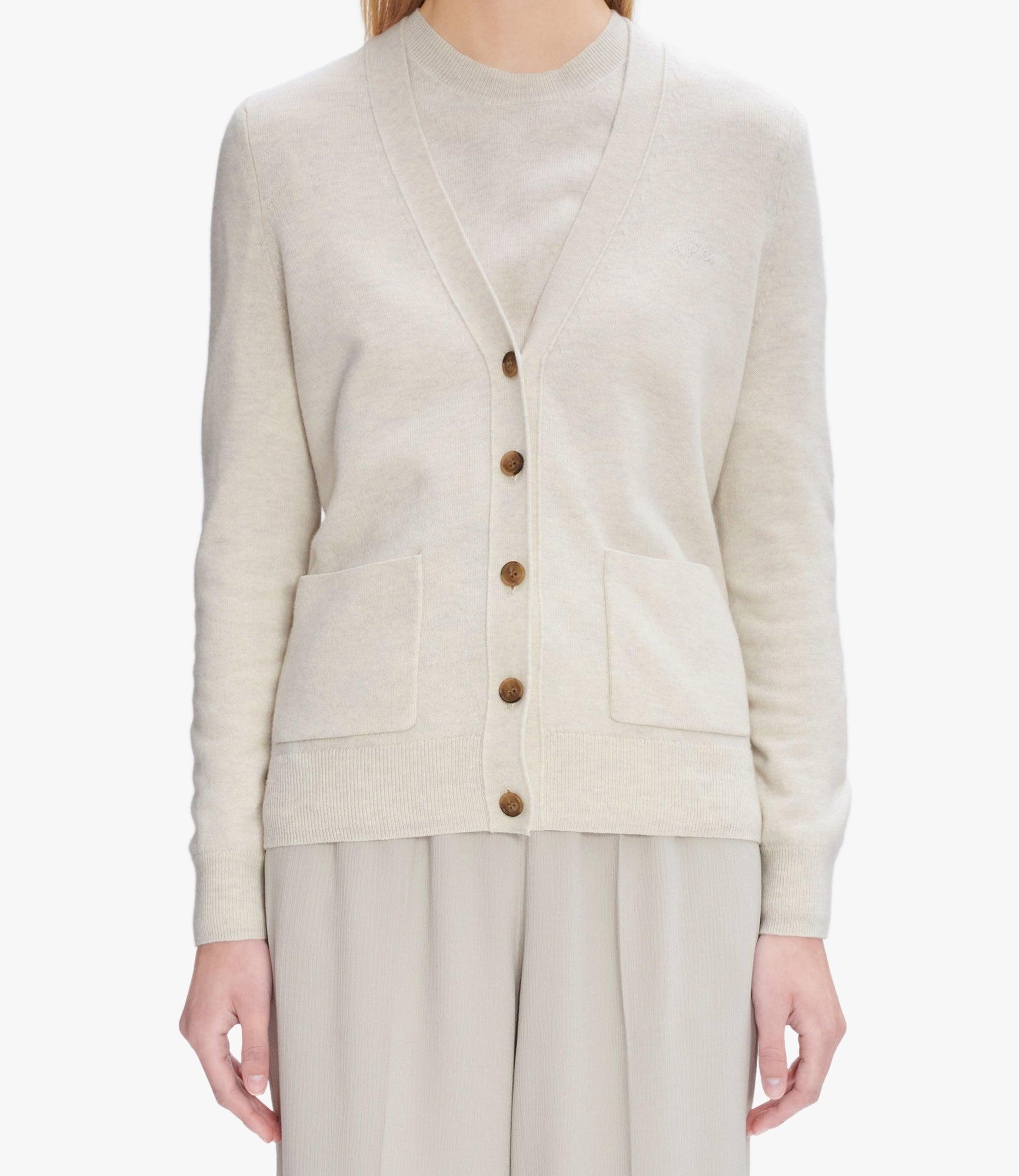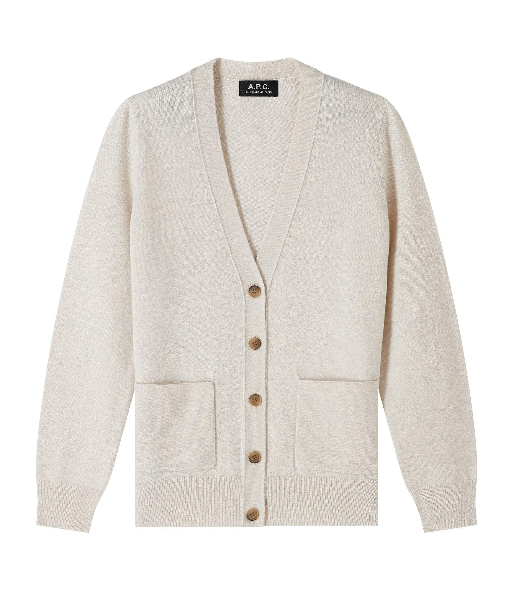 A.P.C. Women's cardigan. - Straight cut.- V-neckline.- Two pockets.- Tone-on-tone A.P.C. logo embroidered over the heart.- Five button closure in faux horn.- 100% RWS Merino wool: Responsible Wool Standard, a voluntary standard that attests to wool production that respects animal welfare.