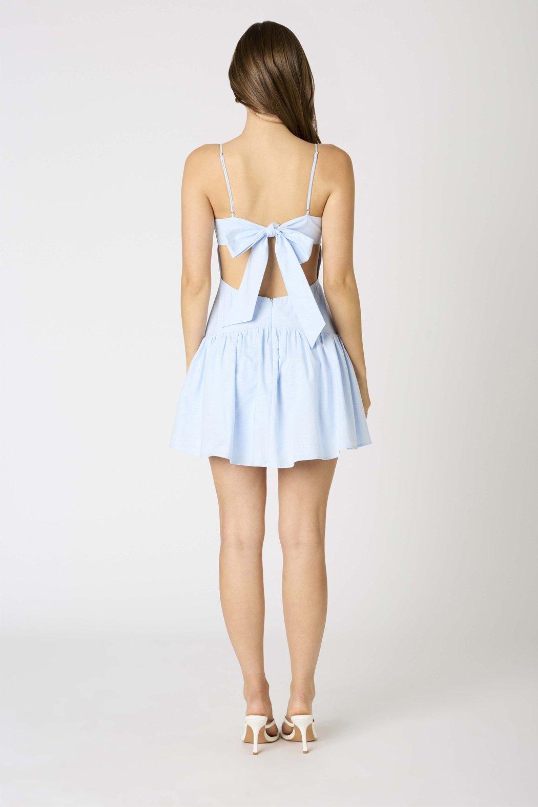 Spring is here and the Louise Mini Dress is ready for your next dance, formal, or night out. This sky blue mini dress features a cupped sweetheart neckline with adjustable straps, a drop waist with a ruffled skirt and open back with tie detail.