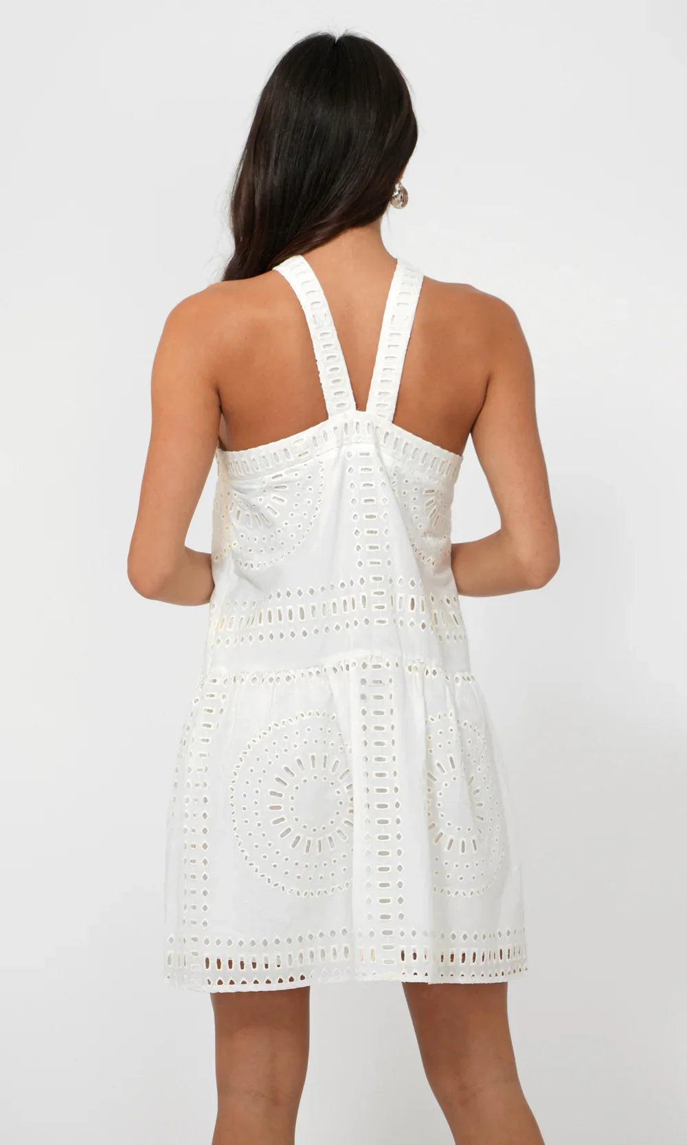 Louvie Eyelet Halter Mini Dress