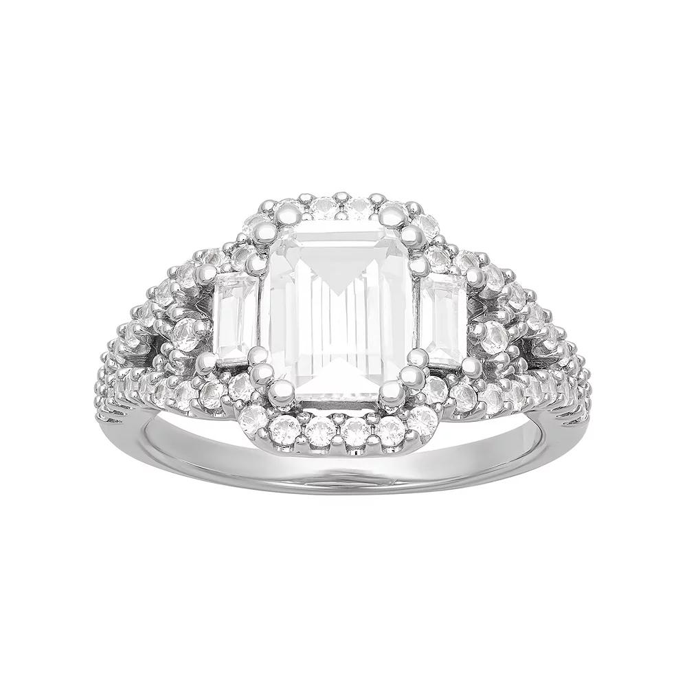 Showcase your love with this Love Always Sterling Silver 2 7/8 Carat T.W. Lab-Created White Sapphire Engagement Ring. Click on this JEWELRY & WATCHES GUIDE to learn about fit, styles, materials and more! Showcase your love with this Love Always Sterling Silver 2 7/8 Carat T.W. Lab-Created White Sapphire Engagement Ring. Click on this JEWELRY & WATCHES GUIDE to learn about fit, styles, materials and more! FEATURES Width: 12 mm Shank style: halo Band fit: flat Nickel safe Metal: sterling silver Plating: rhodium Finish: polished Packaging: boxedSTONE DETAILS Stone type: lab-created white sapphire Total weight: 2 7/8 ct. Shape: emerald cut Setting: prong Size: 6. Gender: female. Age Group: adult.