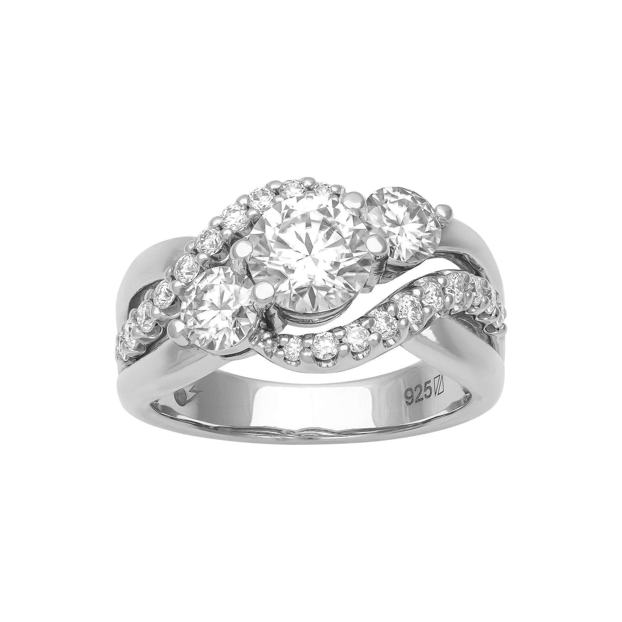 Proclaim your undying love with this sterling silver and lab-created moissanite Love Always engagement ring. Click on this JEWELRY & WATCHES GUIDE to learn about fit, styles, materials and more! Proclaim your undying love with this sterling silver and lab-created moissanite Love Always engagement ring. Click on this JEWELRY & WATCHES GUIDE to learn about fit, styles, materials and more! FEATURES Band width: 11 mm Shank style: 3-stone Band fit: flat Metal: sterling silver Plating: rhodium Finish: polished Packaging: boxedSTONE DETAILS Stone type: lab-created moissanite Total weight: 2 1/8 ct. Center stone weight: 1 ct. Center stone size: 6.5 mm x 6.5 mm Shape: round Setting: shared prong Gemstones may have been treated to enhance their appearance. Special care may be required. Please visit our Gemstone Treatment & Special Care Guide for more information. Gender: female. Age Group: adult.