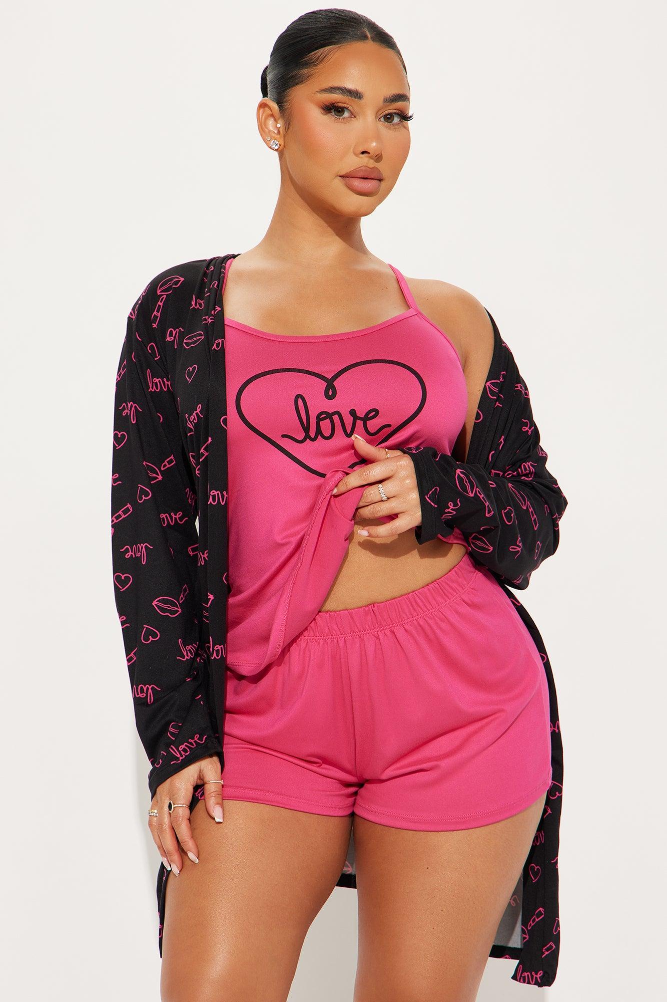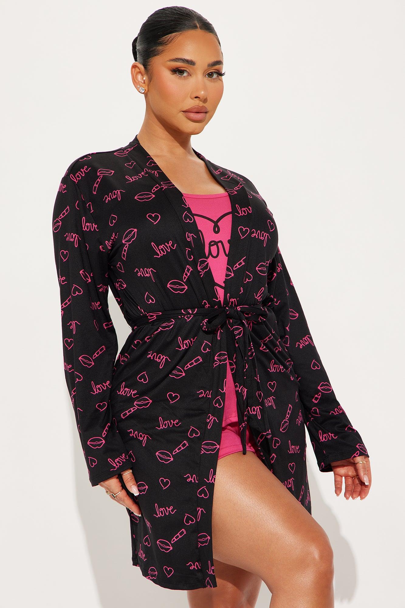 Love In My Heart PJ Robe Set - Hot Pink/combo