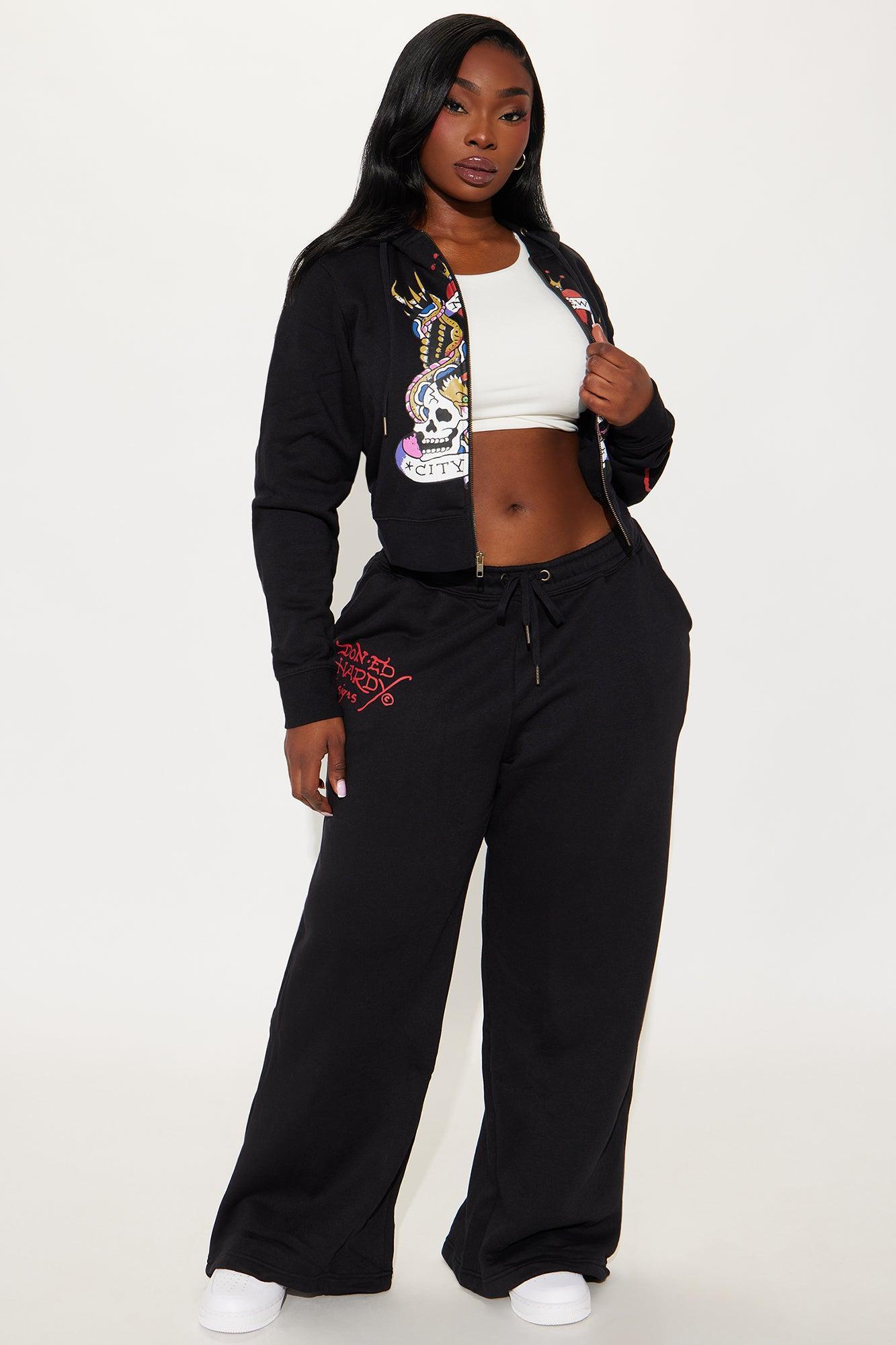 Available In Black. Wide Leg Pant Drawstrings Pockets Ed Hardy Graphic Front And Back Screen Pair Back To "Love Kills Ed Hardy Zip Front Hoodie" Disclaimer: Due To The Printing Process A Difference In Saturation May Occur. Each Garment Is Unique. 55% Cotton 45% Polyester Imported