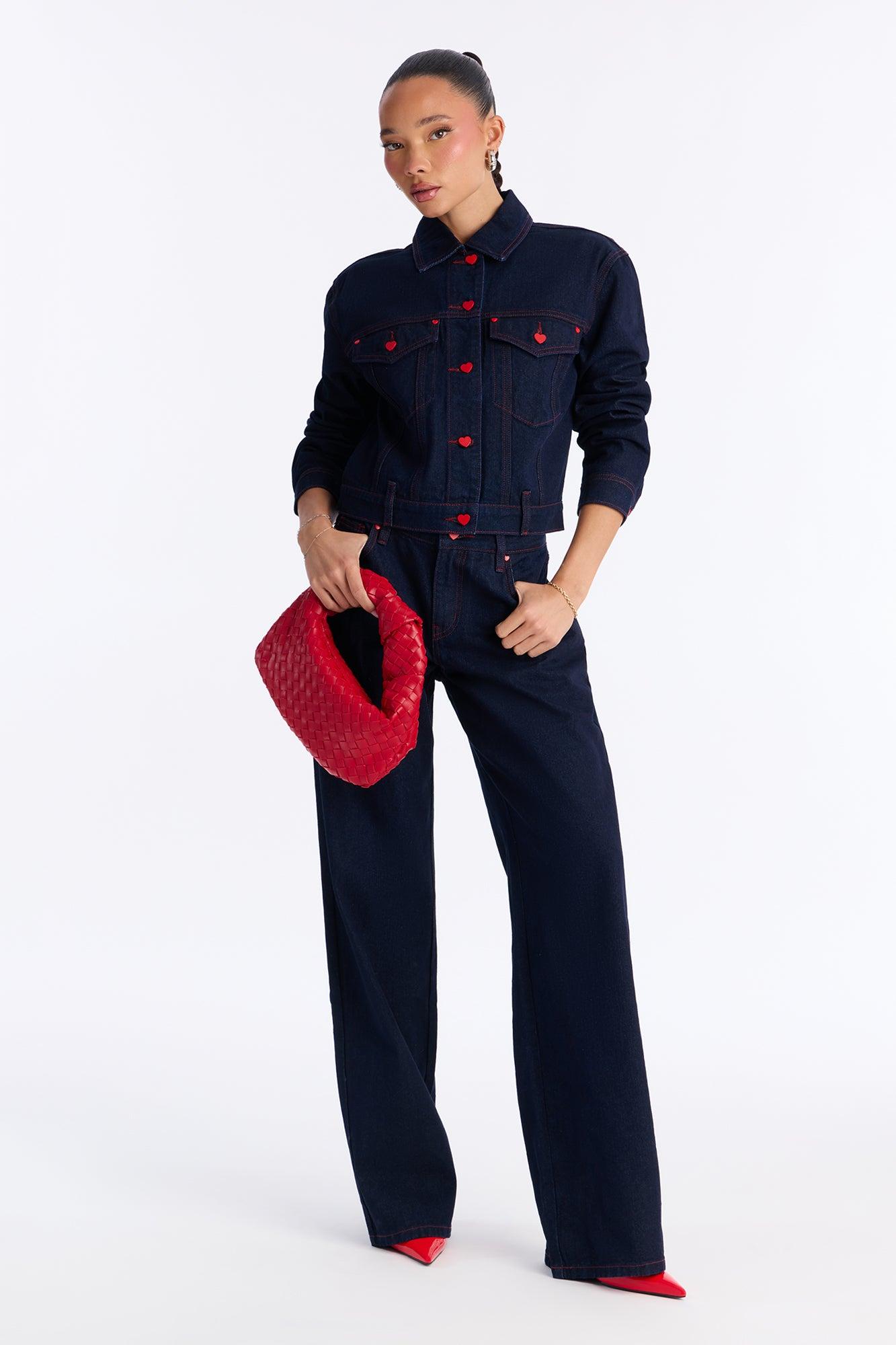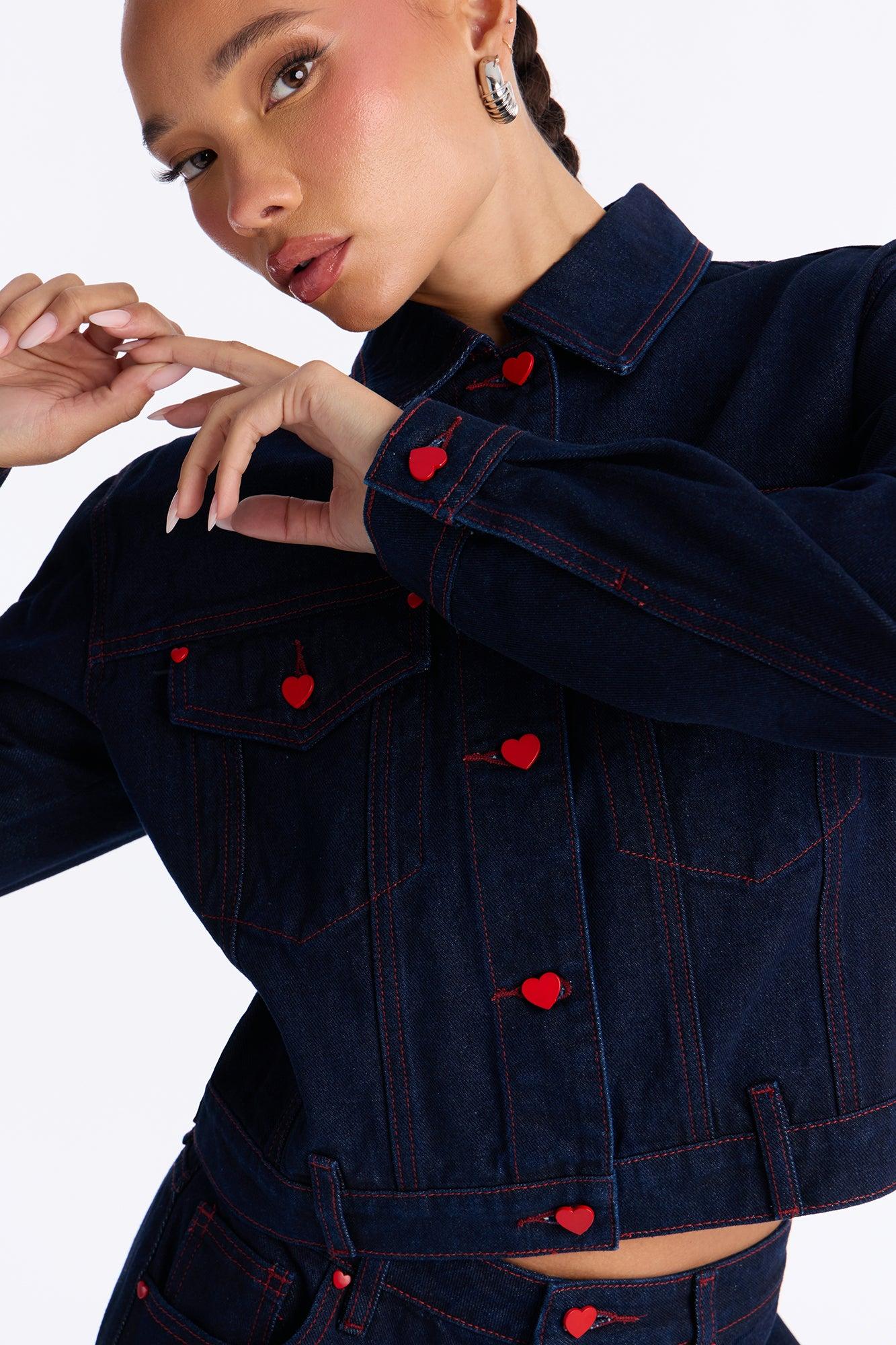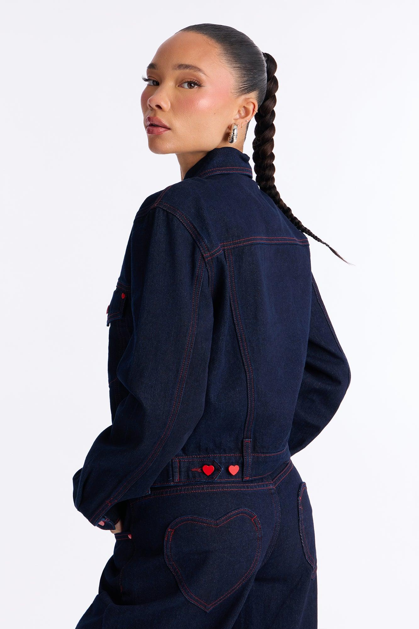 Love Language Denim Jacket - Rinse Blue Wash Female