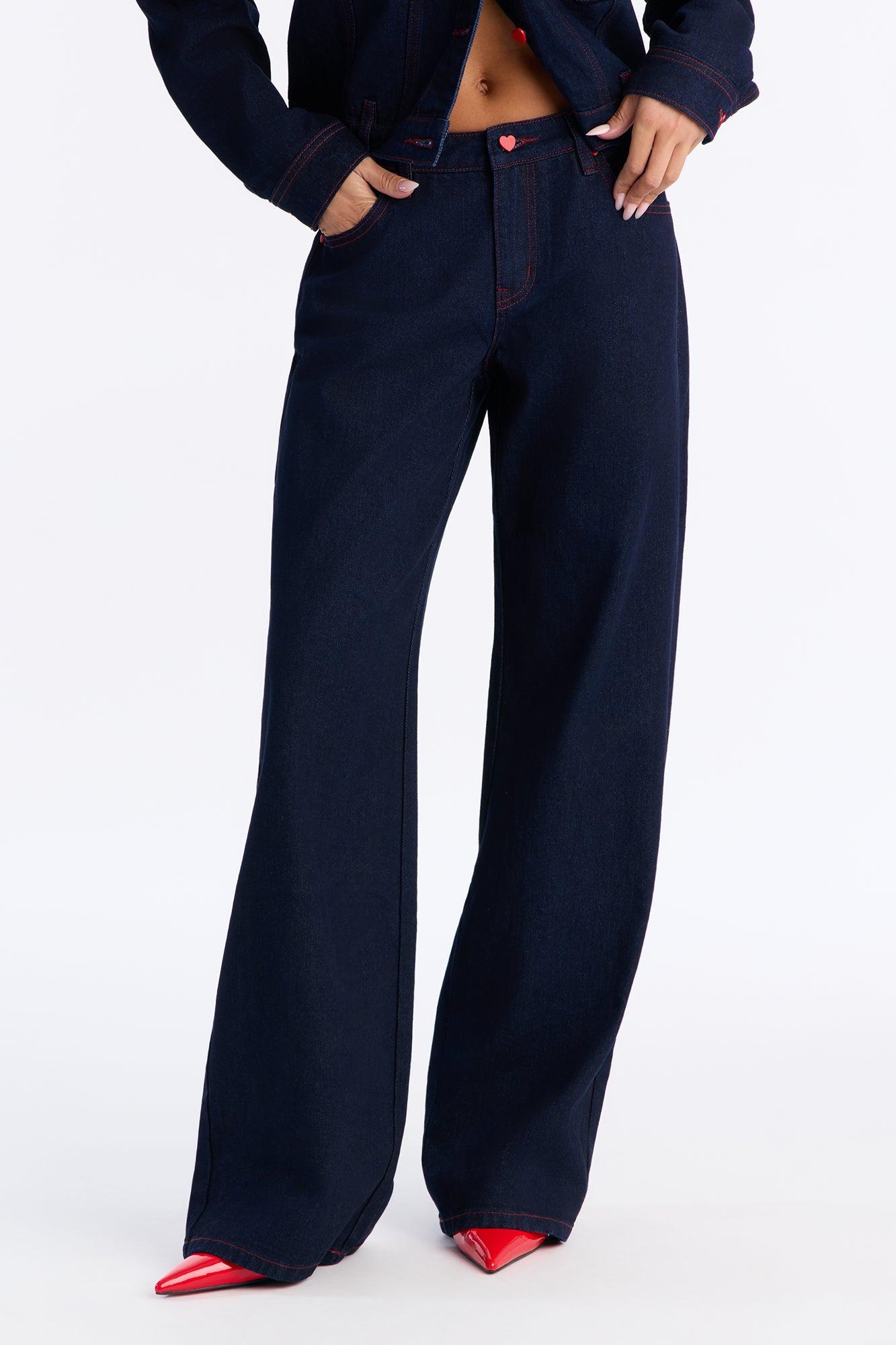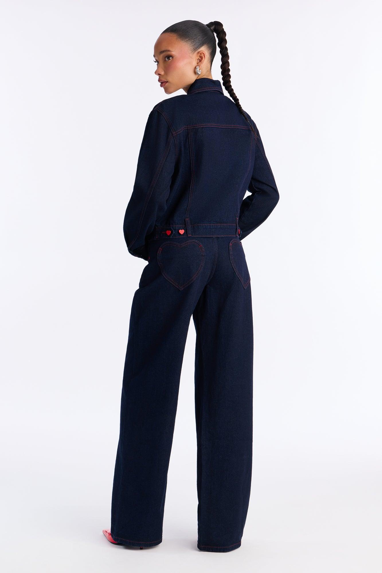 Available In Rinse Blue Wash. Pair With Love Language Denim Jacket Wide Leg Jean 5 Pocket Heart Button Heart Pockets 10" Rise 33.5" Inseam Non-Stretch Disclaimer: Due To The Specialized Wash, Each Garment Is Unique. 100% Cotton Imported