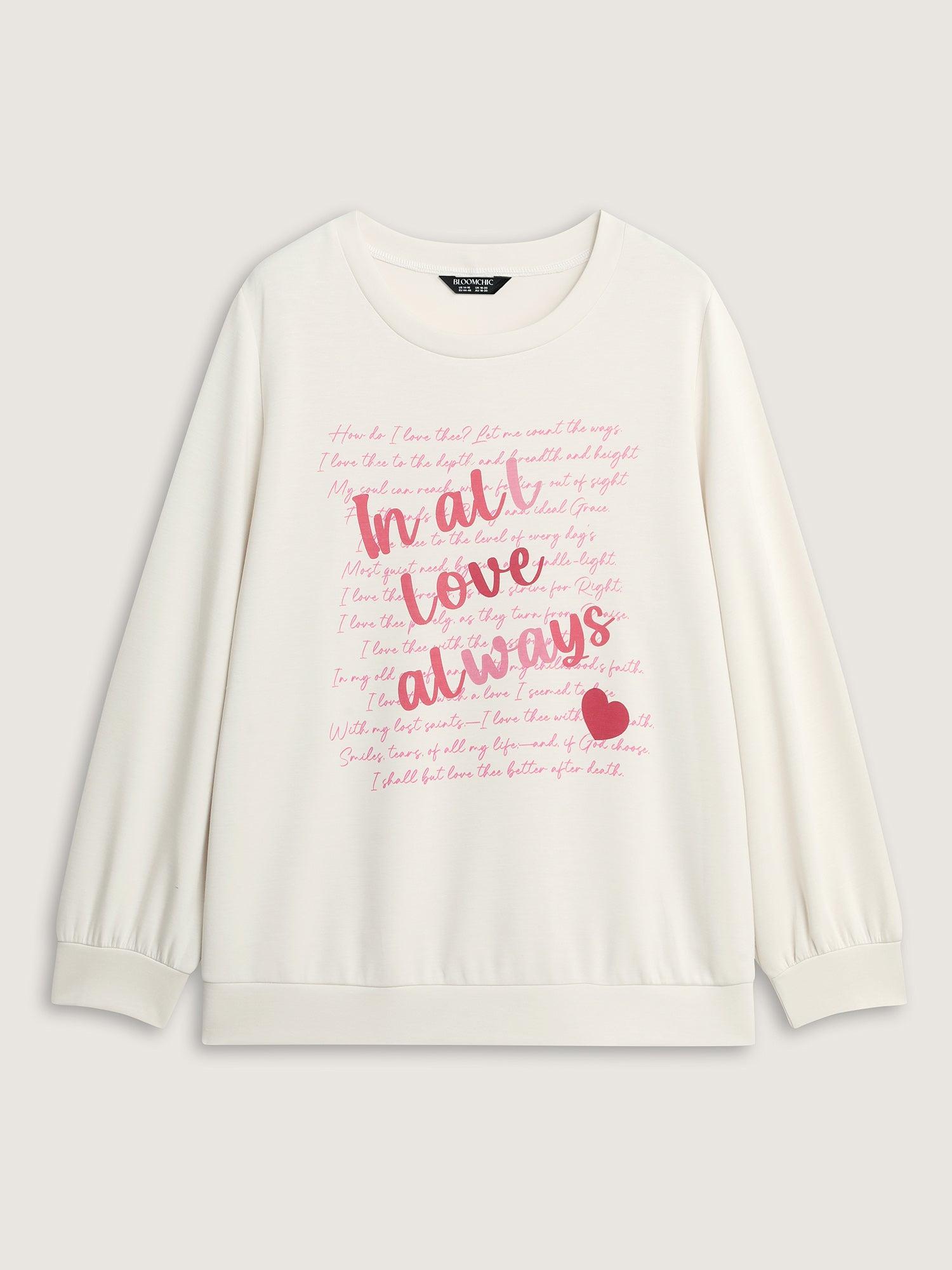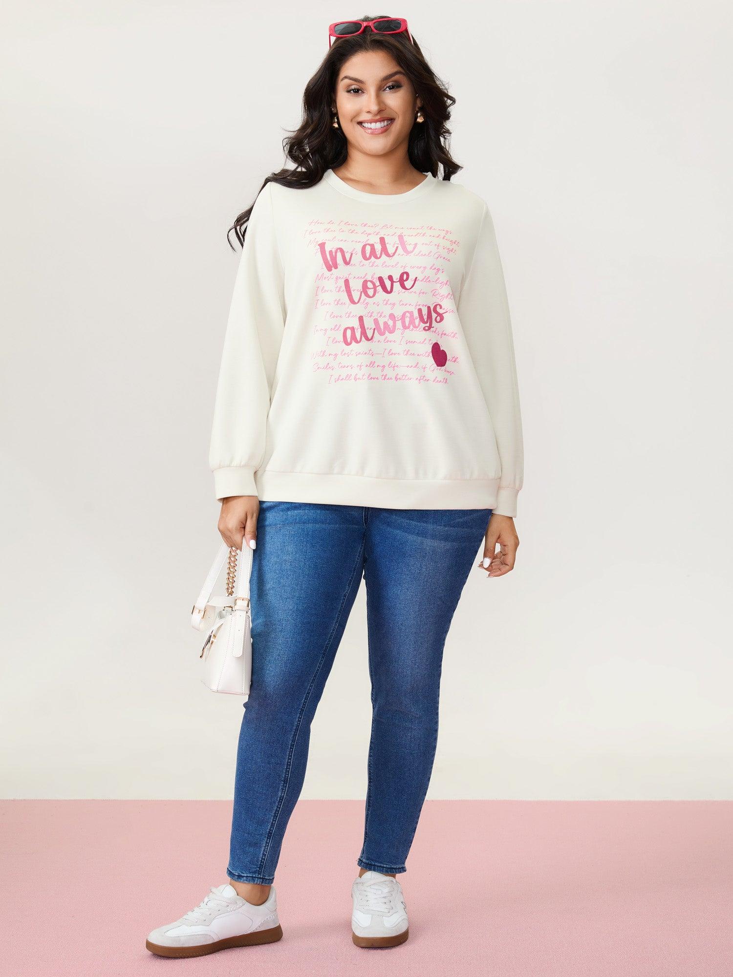 Shop Love Letter Pattern Sweatshirt now and redefine your style with confidence at BloomChic. Tailored for mid and plus-size women. This trendy Tops Women, sizes 10-30. Color:WhiteSmoke;Style:Playful;Neckline:Round Neck;Sleeve Type:Regular Sleeve;Pattern Type:Positive slogan;Prints:Letter;Details:Texture;Pocket:No-pocket;Belt:No-belt;Closure Type:Non