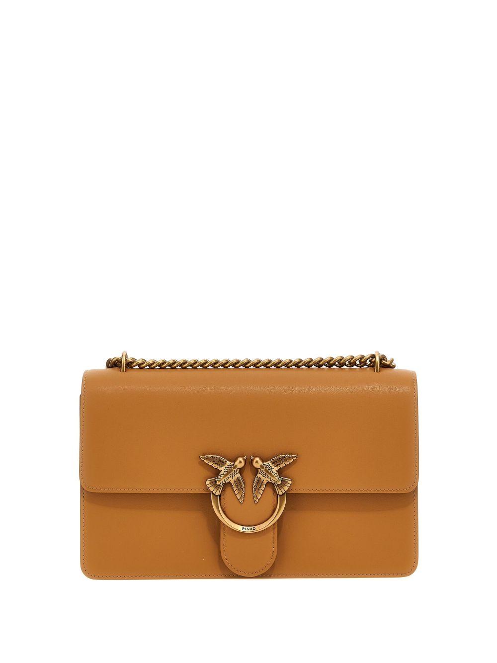 PINKO Love One Simply crossbody bag | Brown | camel brown | foldover top with magnetic fastening | adjustable leather and chain-link shoulder strap | internal zip-fastening pocket | signature Love Birds buckle | Bovine Leather/Calf Leather/Polyamide/Polyurethane/Cotton | Messenger & Crossbody Bags | Bags | Women