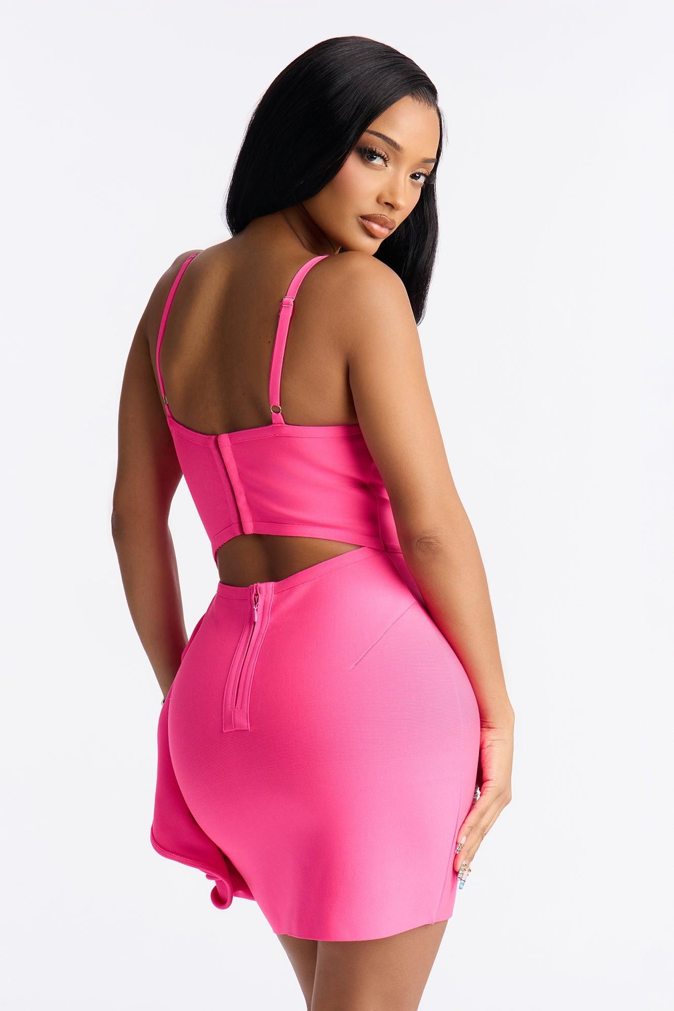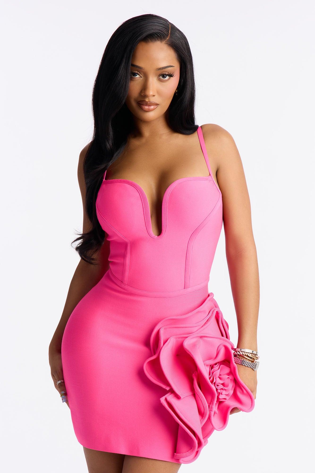 Love Story Rose Bandage Mini Dress - Neon Pink Female