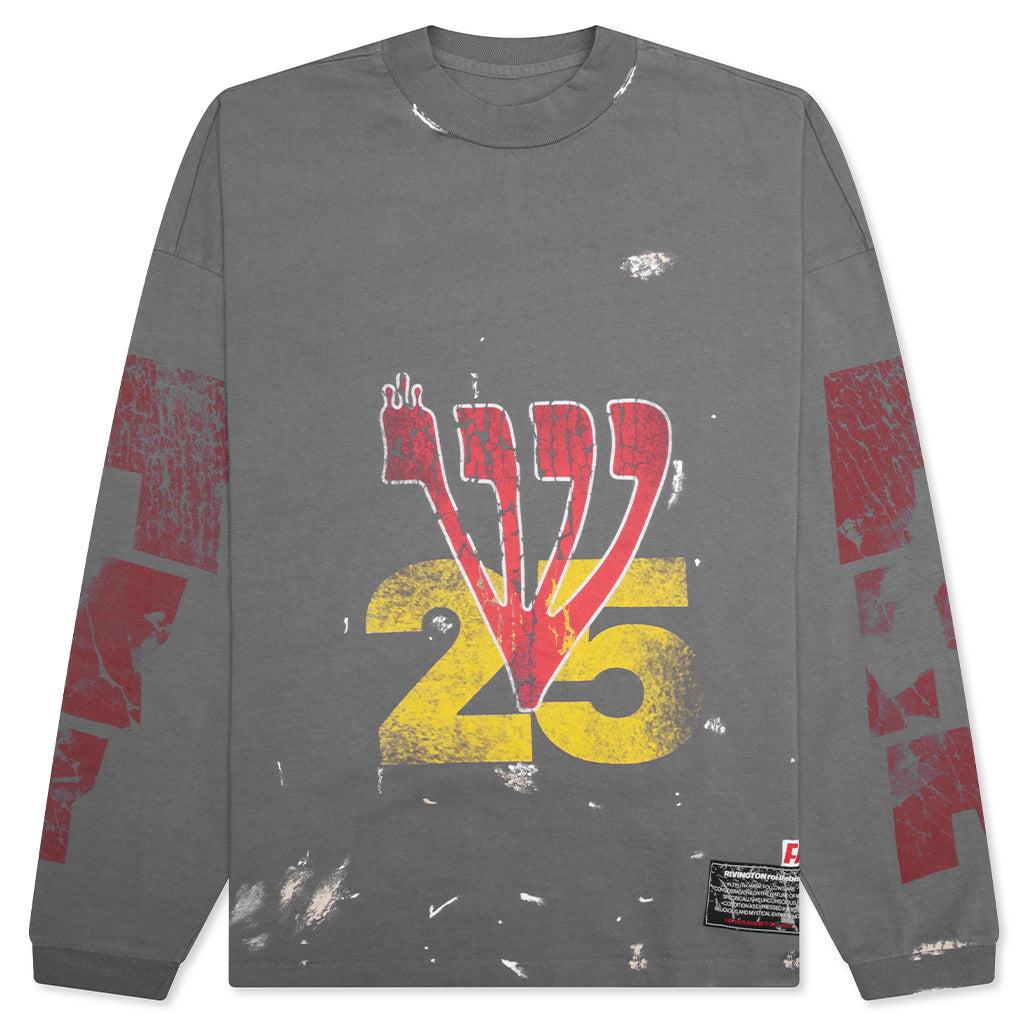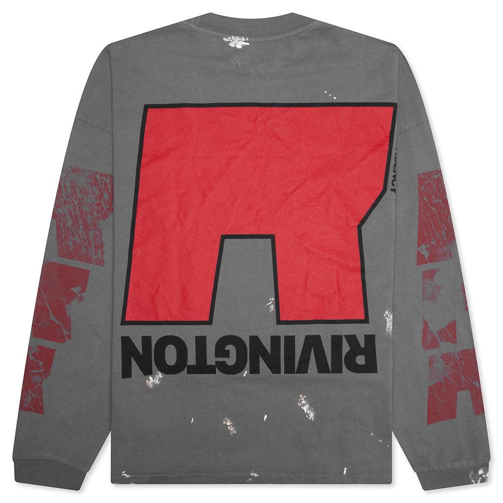 RIVINGTON roi Rebis introduces the Love Stuff L/S Tee in its latest collection. Crafted from 100% cotton, this medium-weight garment is treated with a heavy stone wash, adding a vintage feel. The tee has an oversized, boxy fit. Screen-printed graphics are seen on both the front and back, adding a unique artistic flair. Some finishing touches include the crew neckline and ribbed trims. All color fades, tears, rips, discoloration, and distressing of fabrics are intentional. 100% Cotton Made in Los Angeles Oversized fit/boxy Medium-weight jersey Vintage stone wash Crew neckline Ribbed trims Screen printed graphics Embroidered details Style No: LVST-LS17-GREY