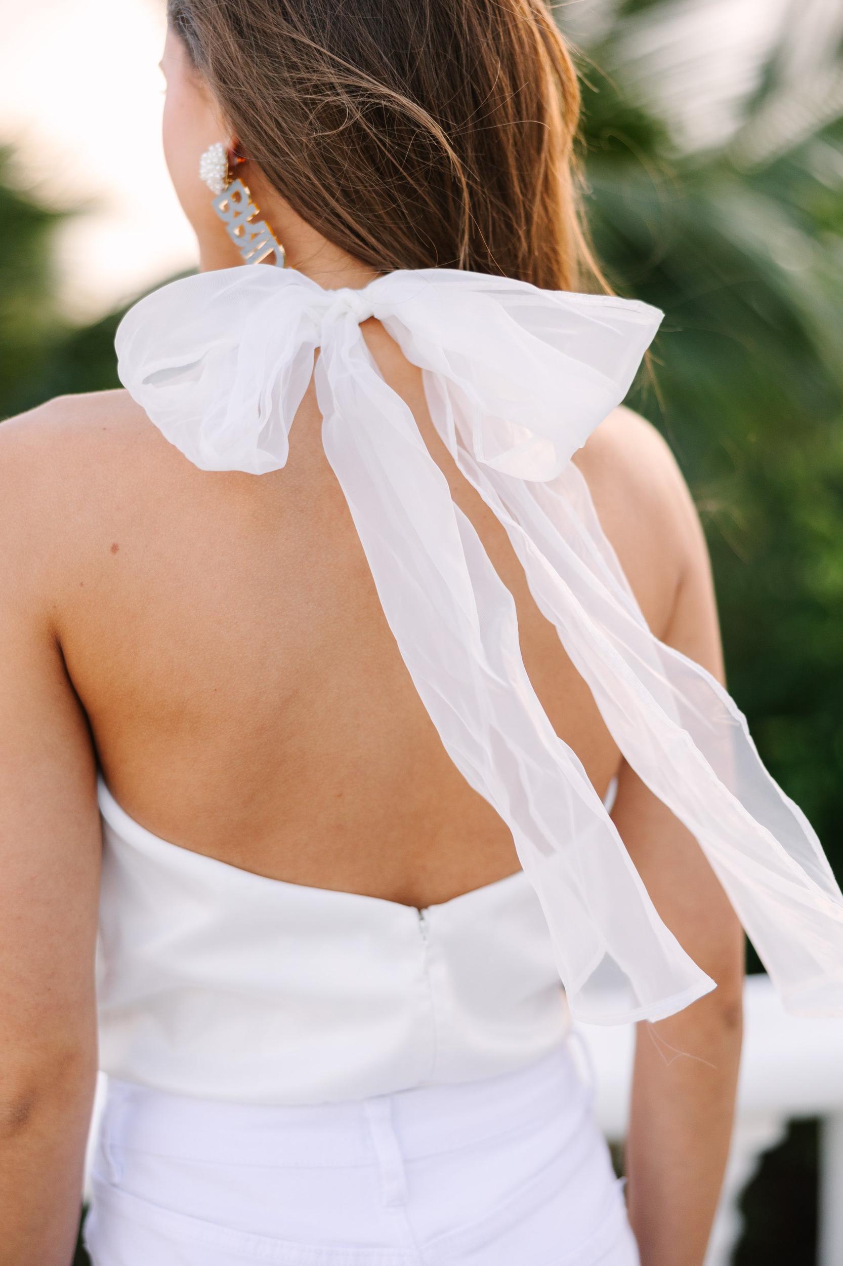 The Love To See It White Organza Bodysuit is an elegant addition to your wardrobe. Crafted with a lightweight organza overlay and intricate halter bodysuit design, this piece gives your look a touch of sophistication. This bodysuit features a tied back halter neckline, a zip back closure, and a snap closure. Material has no amount of stretch.Sydney is wearing the small.