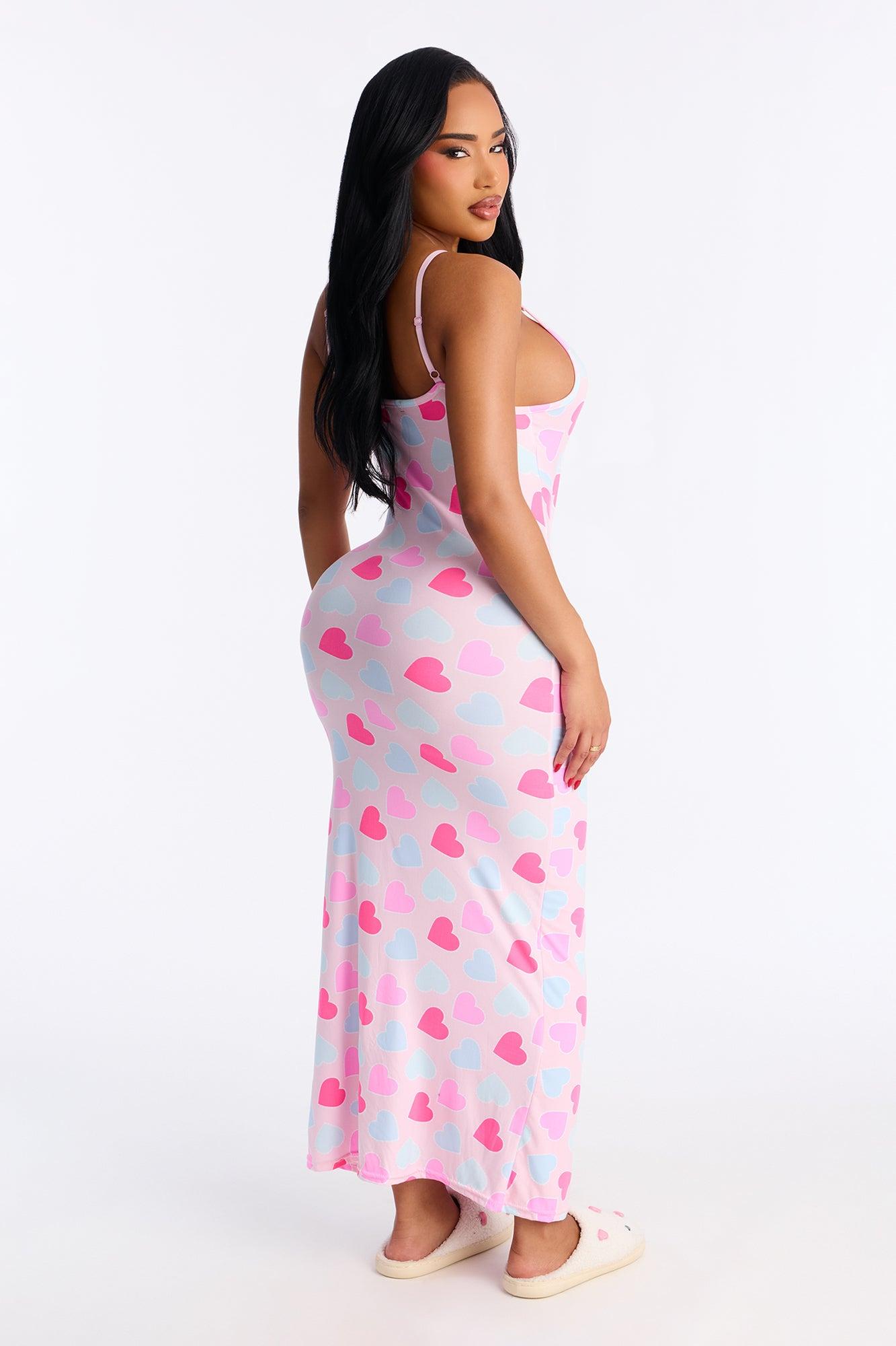 Love You Too Maxi PJ Sleep Dress - Pink/combo Female