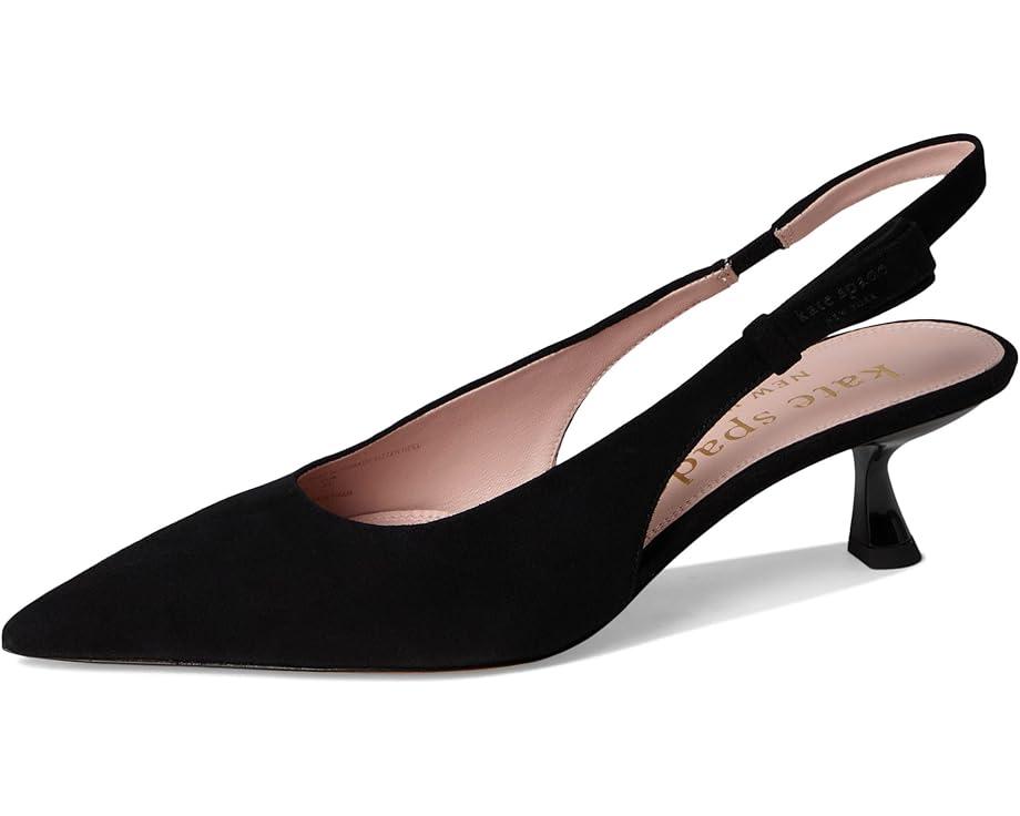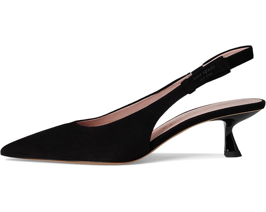 Put your best foot forward choosing the Kate Spade New York® Riley Slingback Kitten Heels. Featuring glossy patent leather upper, leather lining, and insole, these heels offer both style and comfort. The pointed toes and buckle closure add a touch of refinement to any outfit. Elevate your look with these chic and versatile heels.