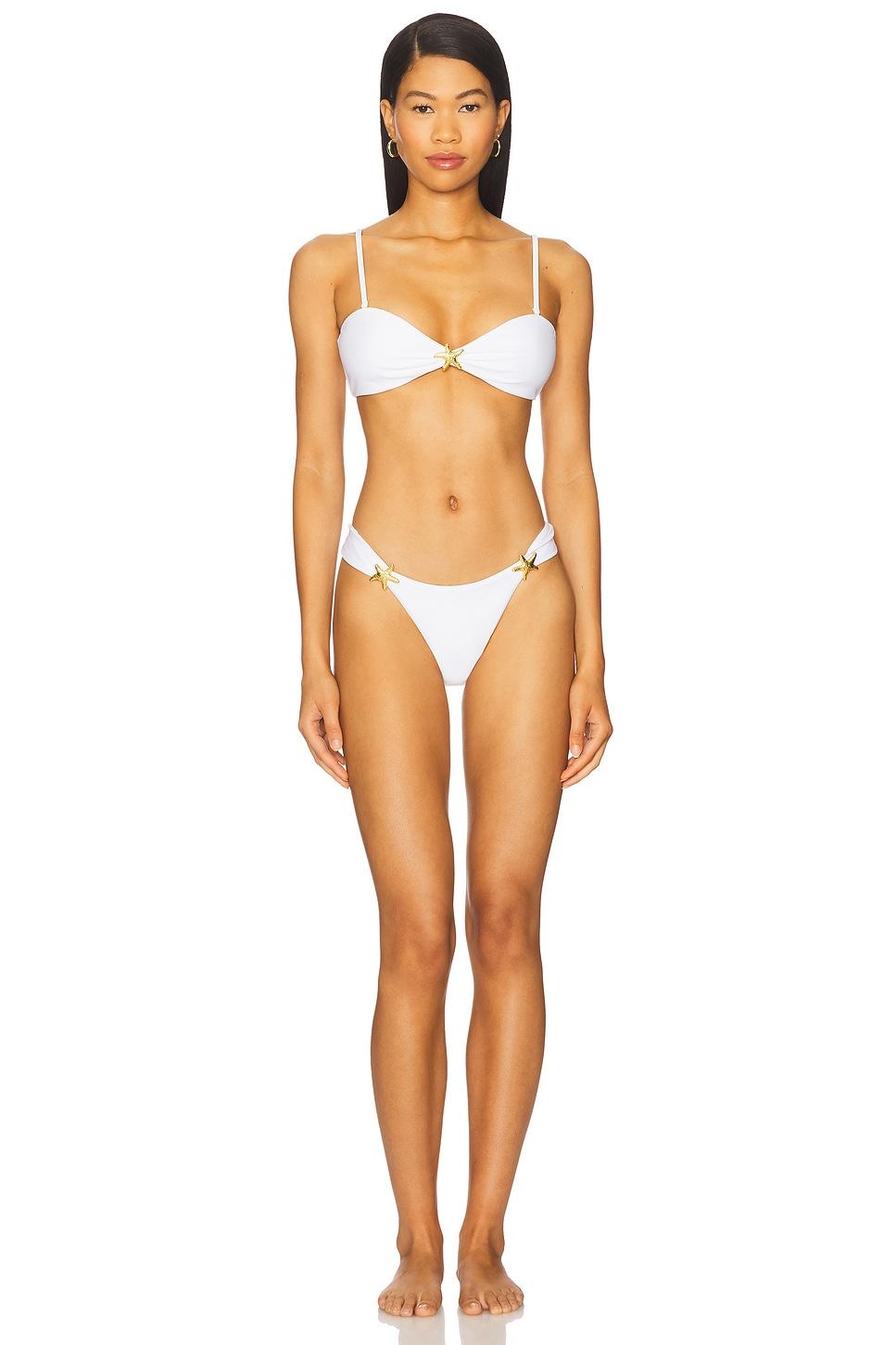 Self: 82% nylon, 18% elastaneLining: 93% polyester, 7% elastane. Hand wash cold. Pull-on styling with elastic waistband. Low-rise design with cheeky bikini back. Gold-toned starfish charms at sides. Midweight swimwear fabric. Item not sold as set. Made in China. Revolve Style No. LOVF-WX1497. Manufacturer Style No. LFX10030 U25.