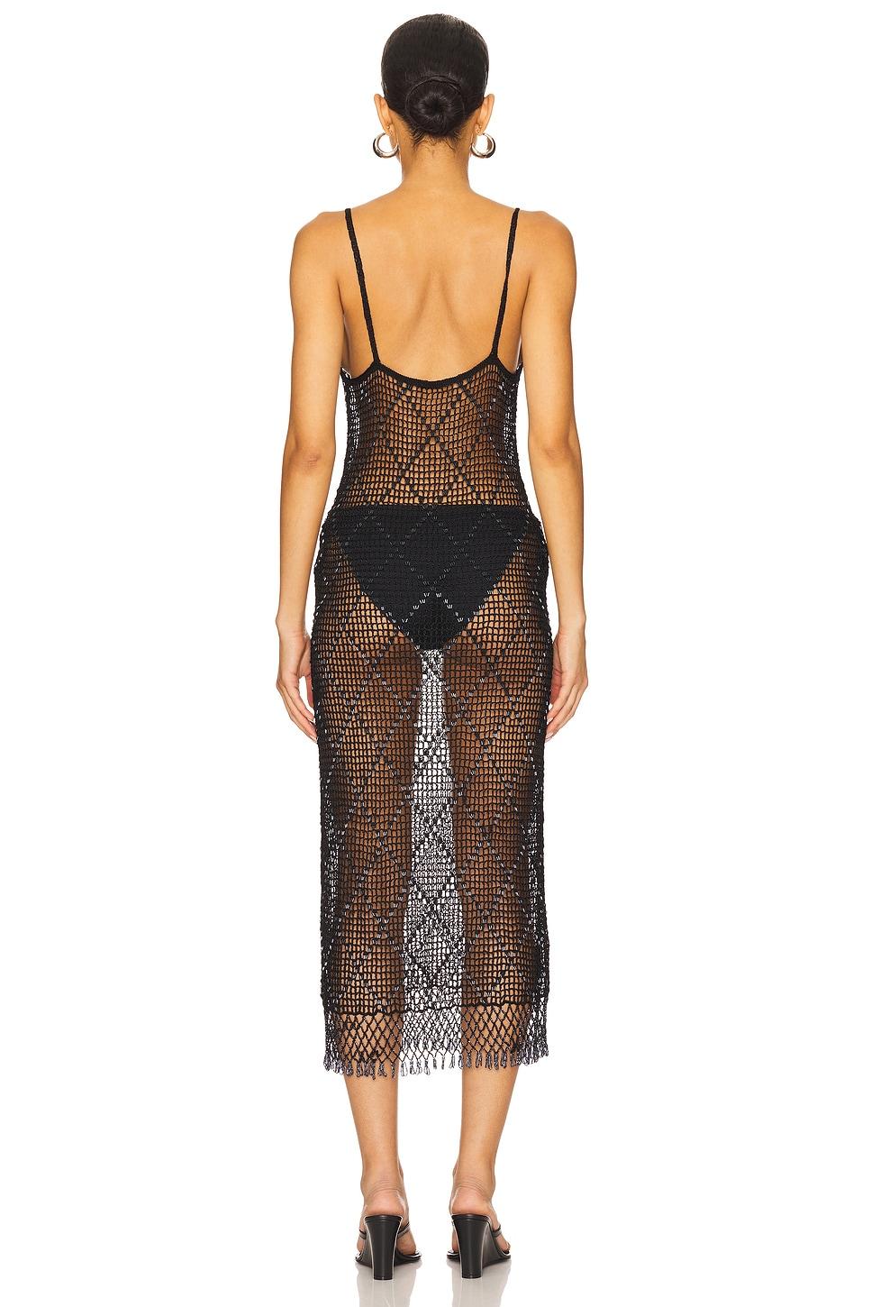 100% viscose. Spot clean only. Unlined. Pull-on styling. Open crochet fabric with tonal beaded embellishment. Garment is intentionally sheer, undergarments will show through.Please note undergarment not included. Made in China. Revolve Style No. LOVF-WD4668. Manufacturer Style No. LFD10324 U25.