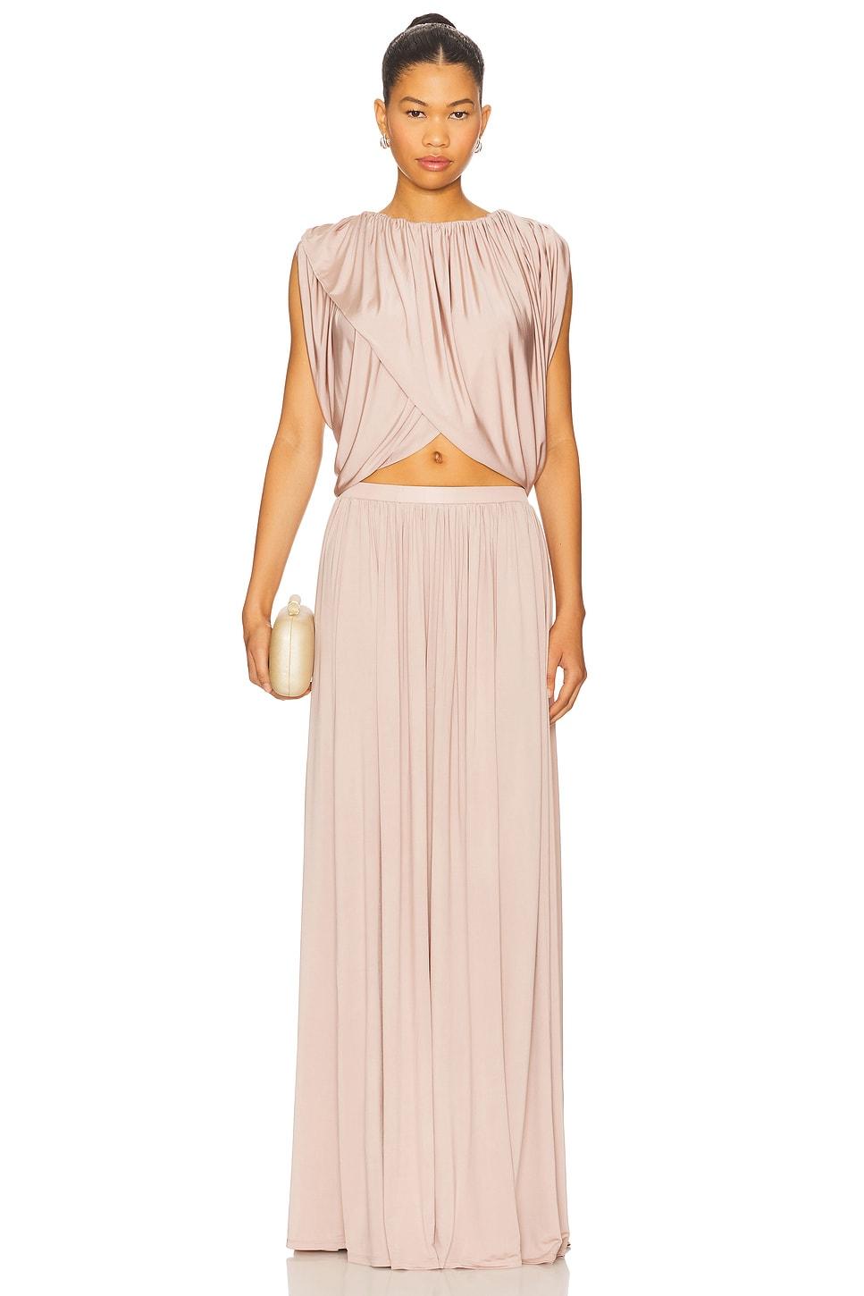 93% viscose, 7% elastane. Hand wash cold or dry clean. High-shine jersey fabric. Made in China. Revolve Style No. LOVF-WS3290. Manufacturer Style No. ACS10078 U25.
