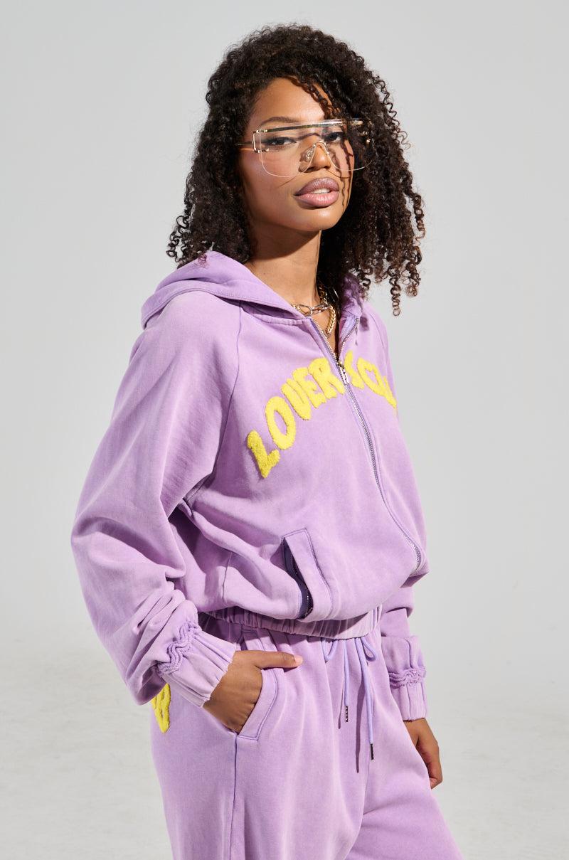 Just a lover girl in The AKIRA Label Lovers Club Zip Up Hoodie. This sweet n’ cozy style is brought to you in a stretchy cotton knit base and features an attached hood, long sleeves with cinched cuffs, the phrase “Lovers Club” in a contrast fuzzy embroidered lettering across the chest, welted side slant front zipper pockets, and a cinched waistband. Complete with a faux silver metallic front zipper closure, and a relaxed, oversized silhouette. Pair with the coordinating AKIRA Label Lovers Club Wide Leg Jogger and slides for a finished look. - 100% Cotton- Hand Wash Cold- Stretchy- Imported (all measurements approximate from size small)- 22” Shoulder to Hem- 27” Sleeves- 19” Shoulder to Shoulder- Model is 5’8” and is wearing size smallProduct ID: 437906 (all measurements approximate from size 1X)- 24” Shoulder to Hem- 28” Sleeves- 21” Shoulder to ShoulderProduct ID: 437910