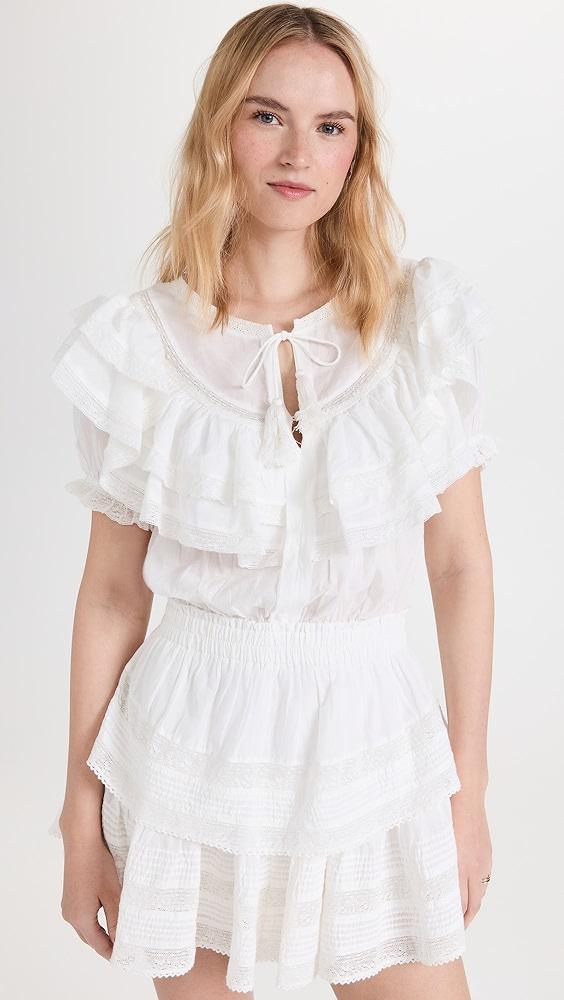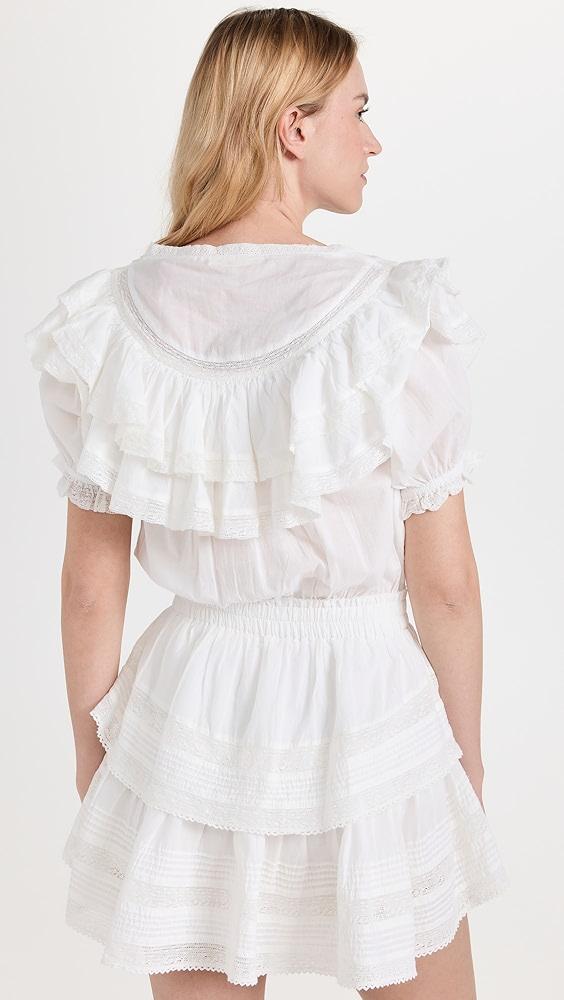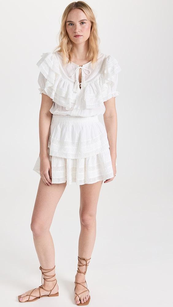 LoveShackFancy Natasha Short Sleeve Eyelet Mini Dress in White