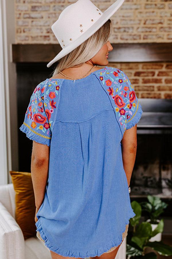 Loving The Sun Embroidered Top In Airy Blue Curves
