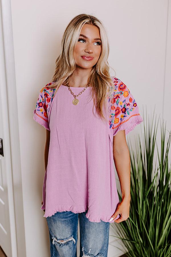 Loving The Sun Embroidered Top In Lavender