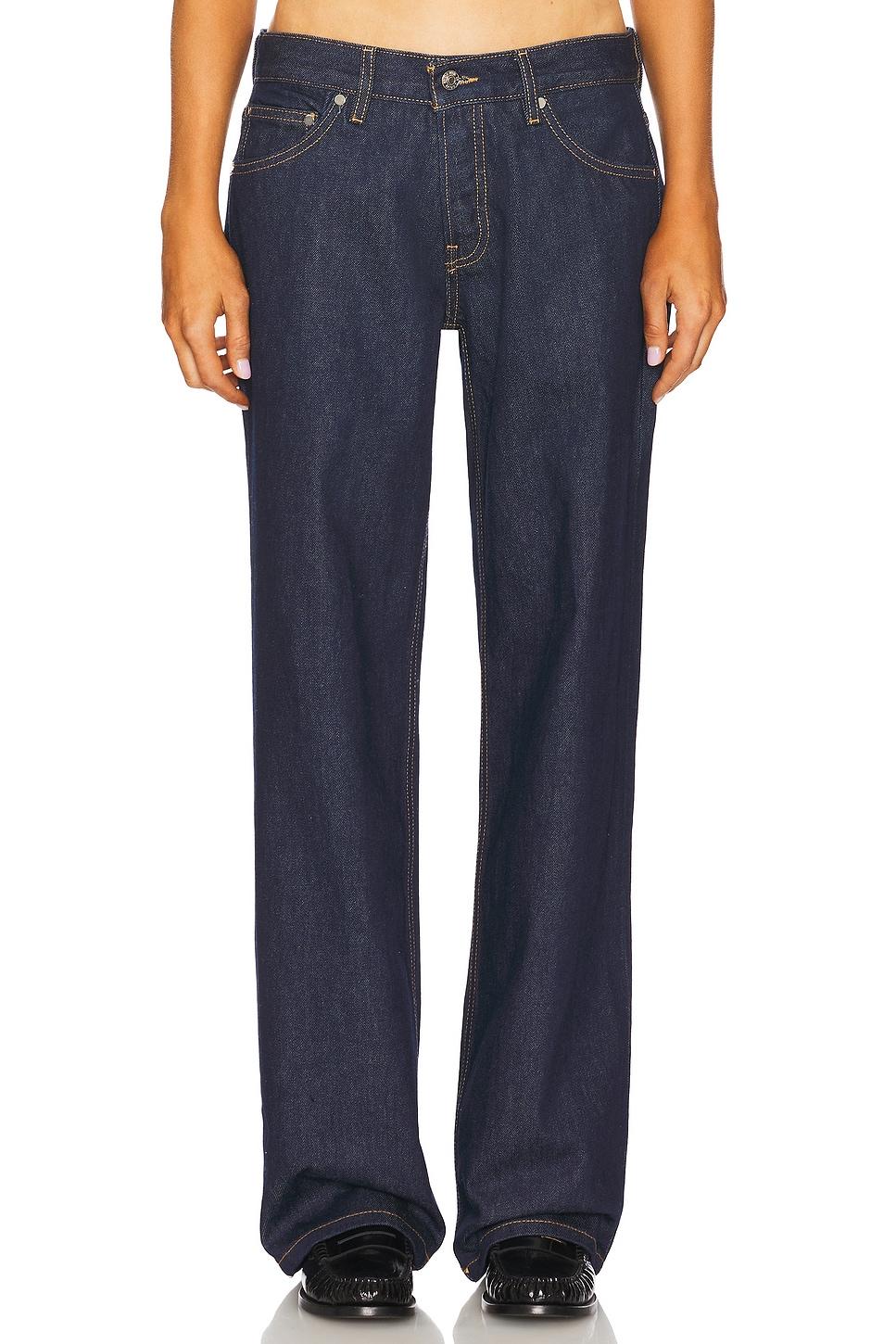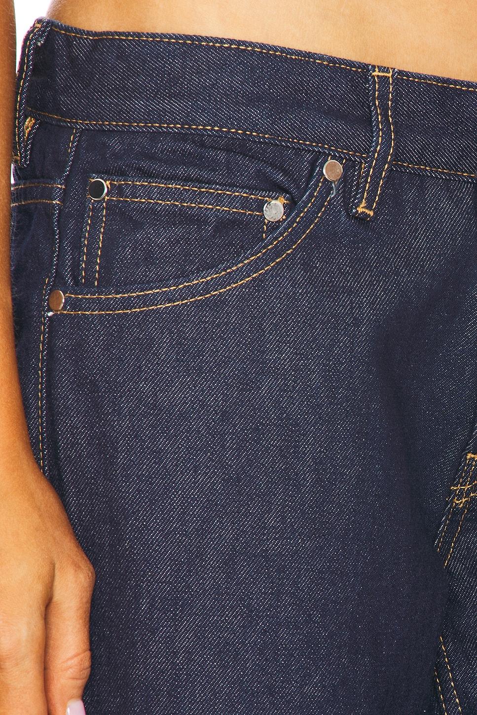 95% organic cotton, 5% post consumer cotton. Made in Pakistan. Machine wash. Button fly closure. 5-pocket design. V-waistline with logo patch at back. Rigid denim fabric. 18" at the knee and 18" at the leg opening. Revolve Style No. EBDR-WJ91. Manufacturer Style No. W1700LRBAG.