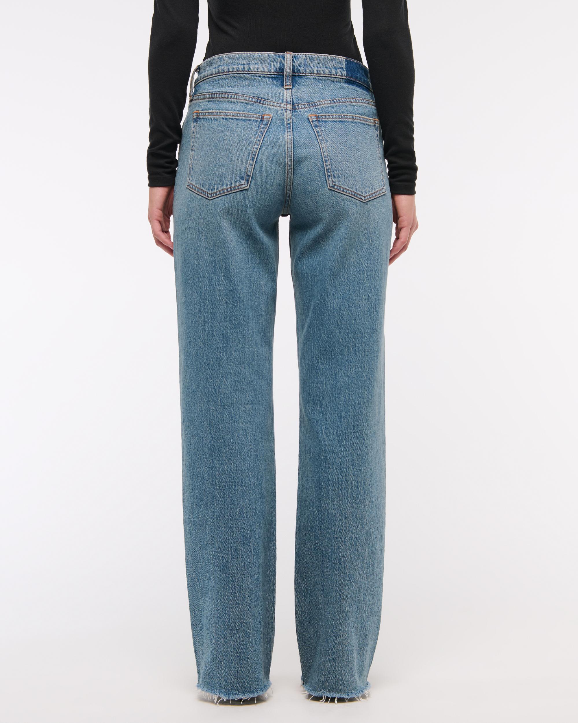 Our classic low rise baggy jeans in a medium tinted wash with a raw hem. This fit features a low rise, is slightly relaxed at waist and hips, and eases at the thigh into a baggy, full-length leg shape. We recommend buying your true size for a baggier fit. Size down for a closer fit. This jean is made from our vintage stretch fabric which features both an authentic vintage look and contains slight built-in stretch for additional comfort.