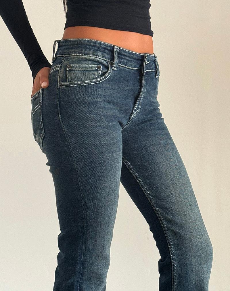 These bootleg jeans are an essential this season. They feature a low rise waist, flared leg, a zip and button fastening, belt loops and pockets on the side. Complete the look with the Bon top. NOW AVAILABLE IN TWO LEG LENGTHS.MODEL WEARS: W26/L34 - MODEL HEIGHT:5'7