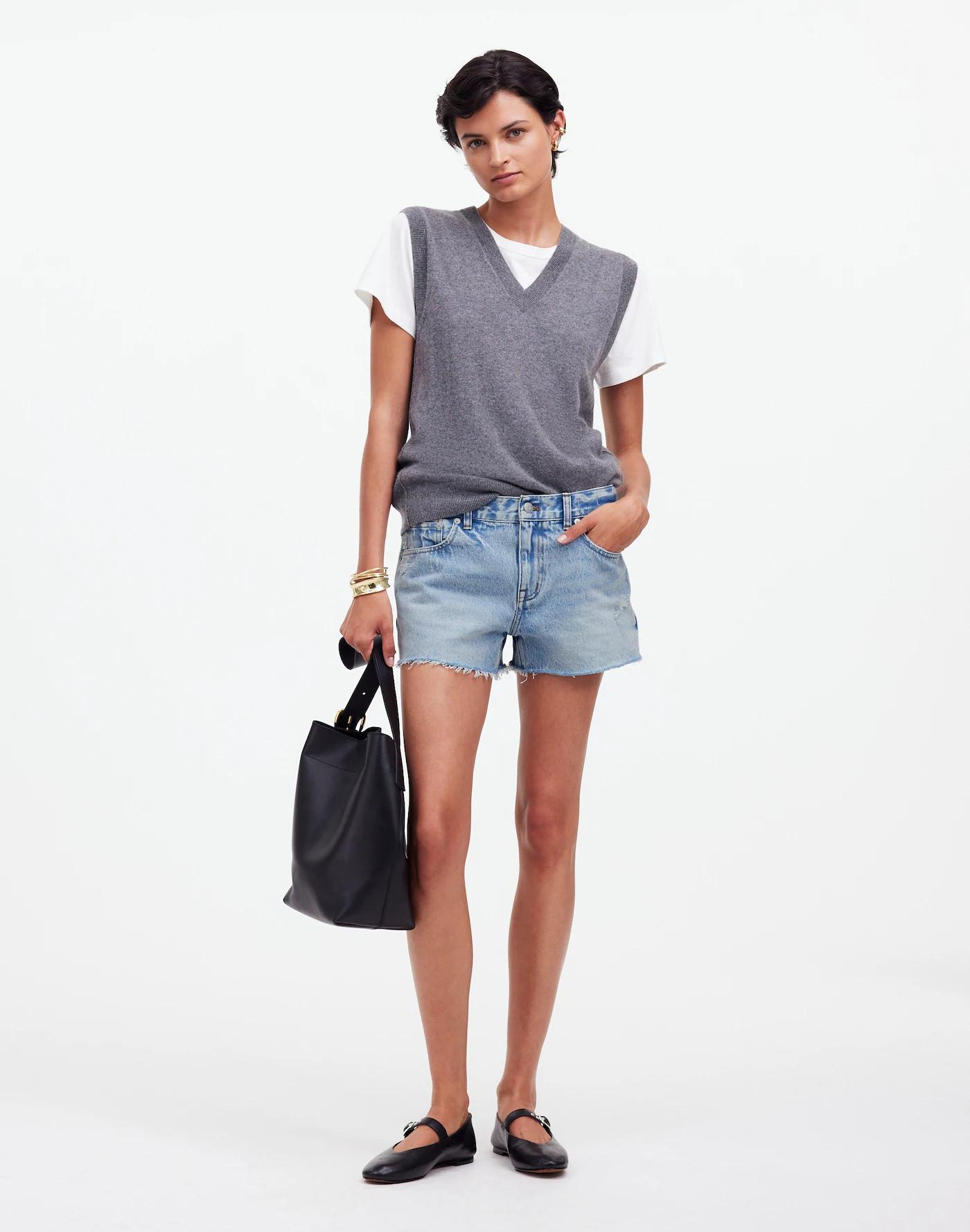 Low-Rise Boyfriend Shorts in Kalamazoo Wash: Raw-Hem Edition