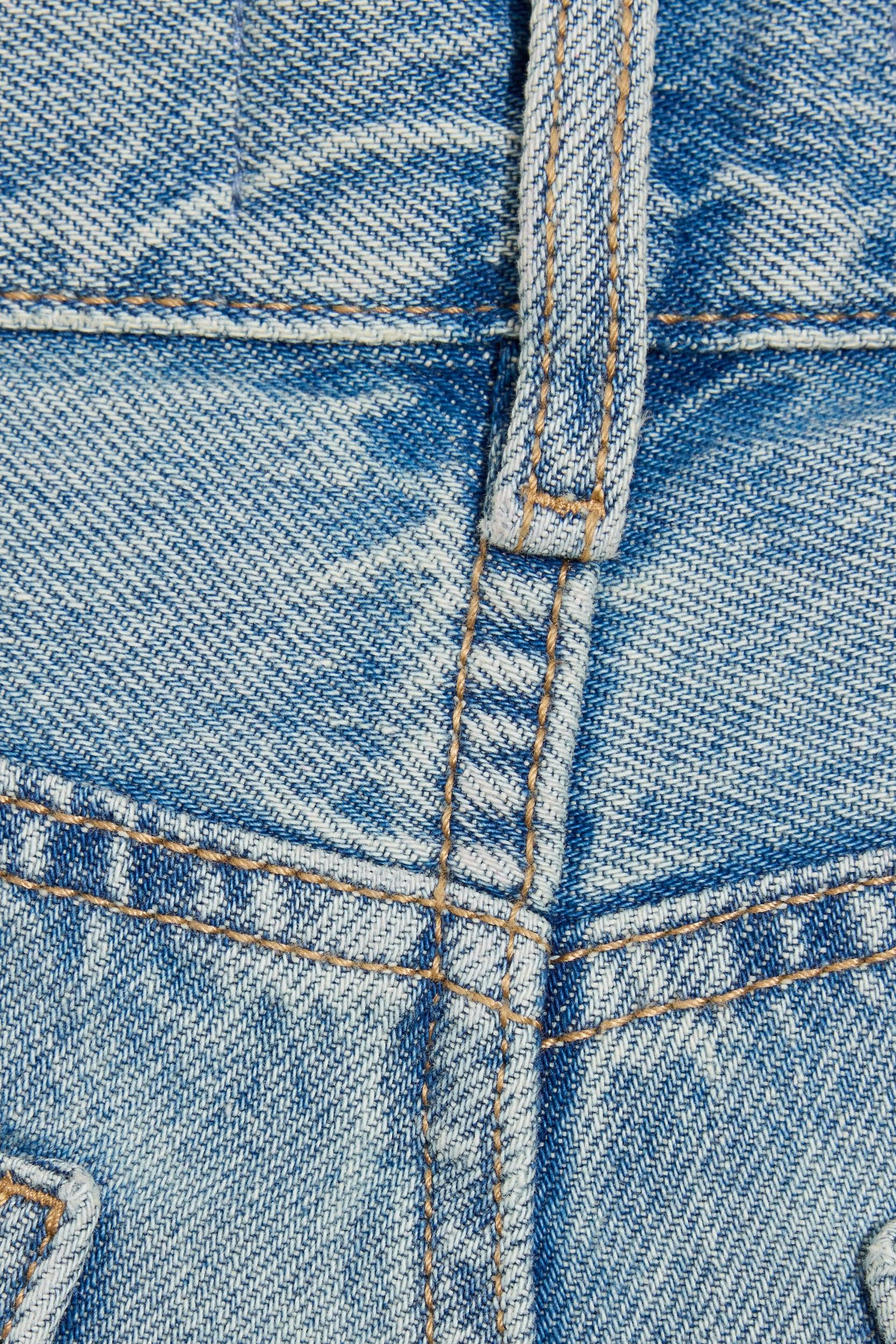 Textbook baddie look: jorts and a baby tee ! Features Five-pocket styling Zip-fly with button closure Cuffed hem Fading and distressing throughout Size & Fit Fit: Classic Rise: 10.5" Inseam: 1.5" Model is wearing size 3 Materials & Care Content: 75% cotton, 25% organic cotton Care: Wash cold, inside out Imported