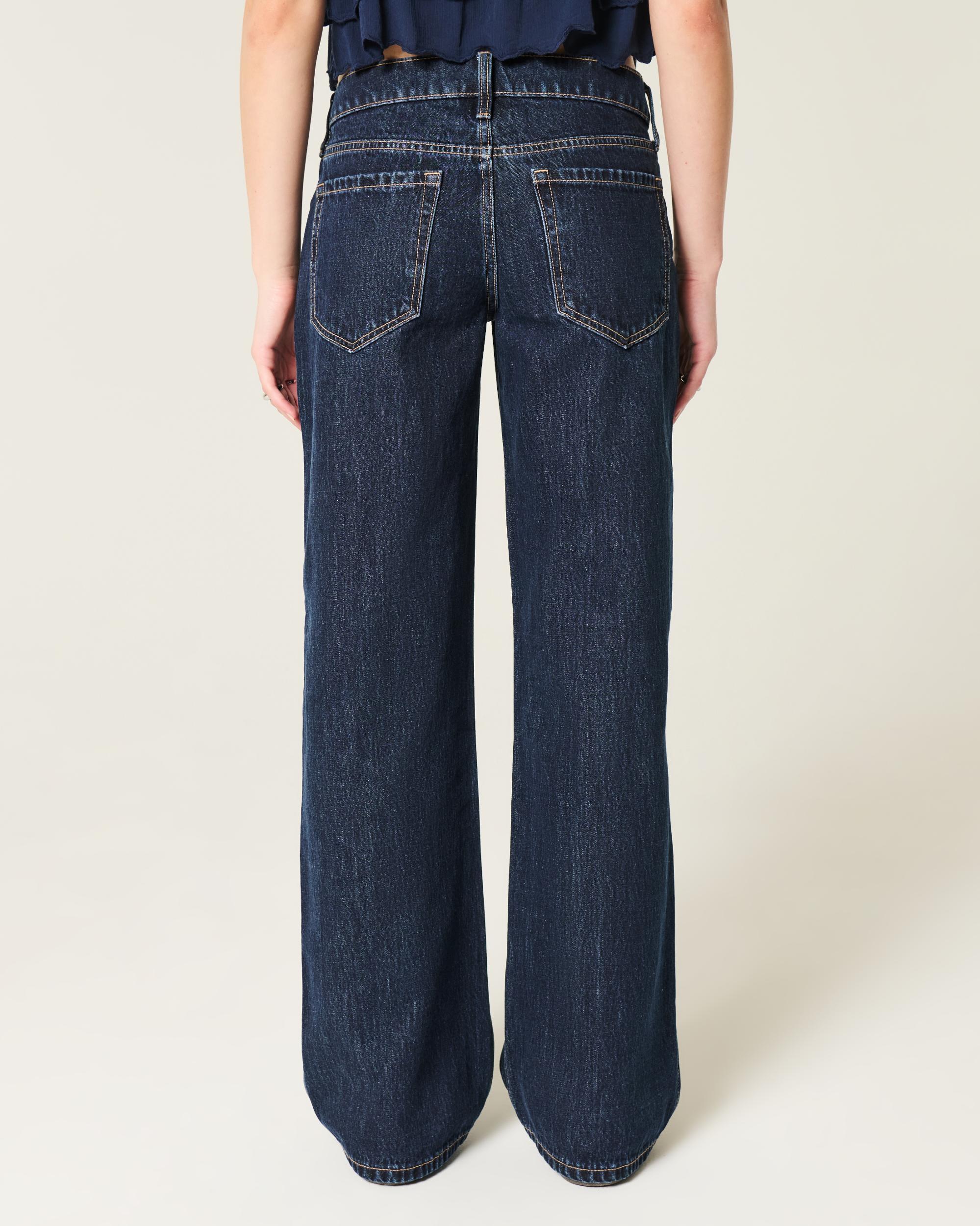 Low-Rise Dark Wash Foldover Waist Baggy Jeans