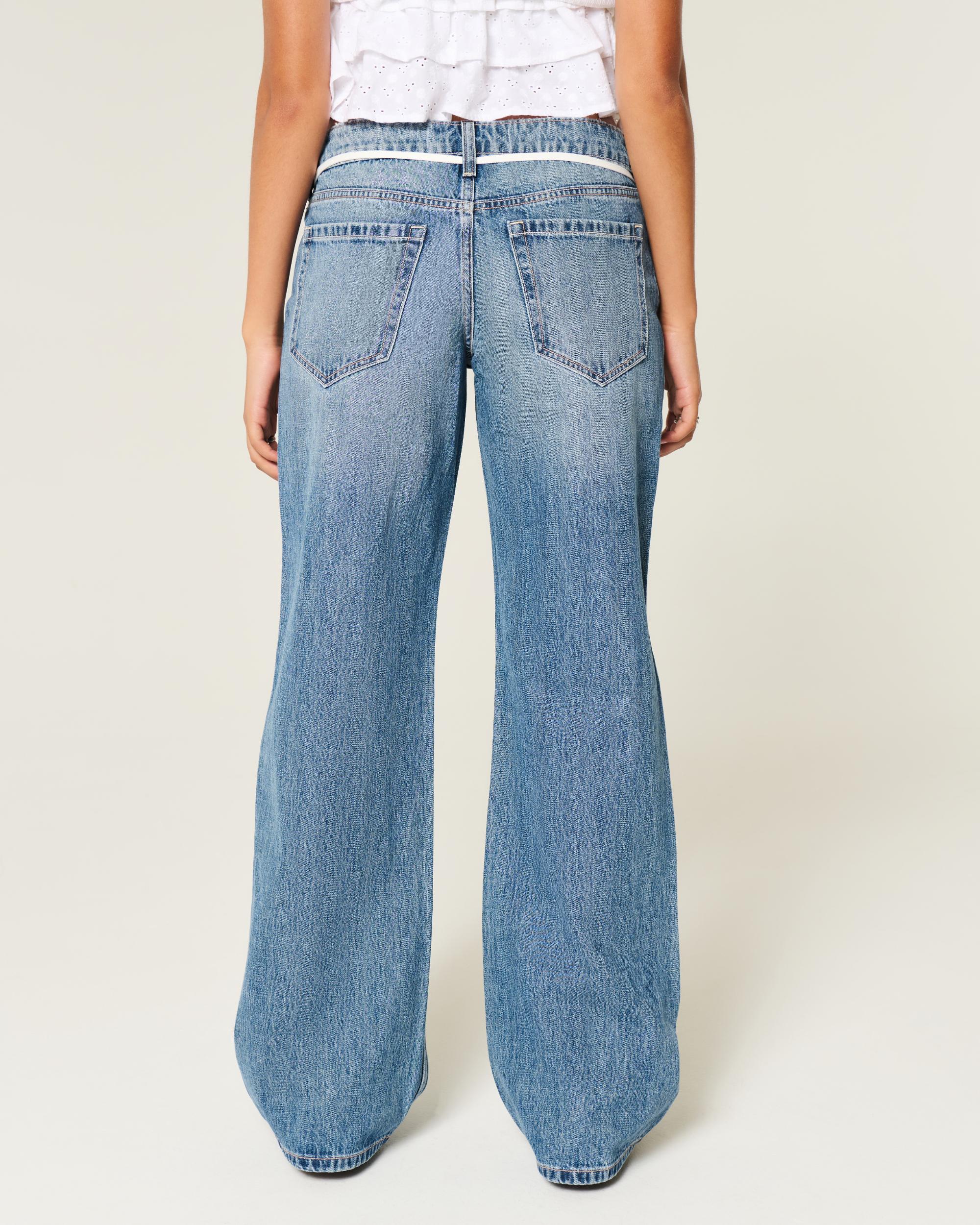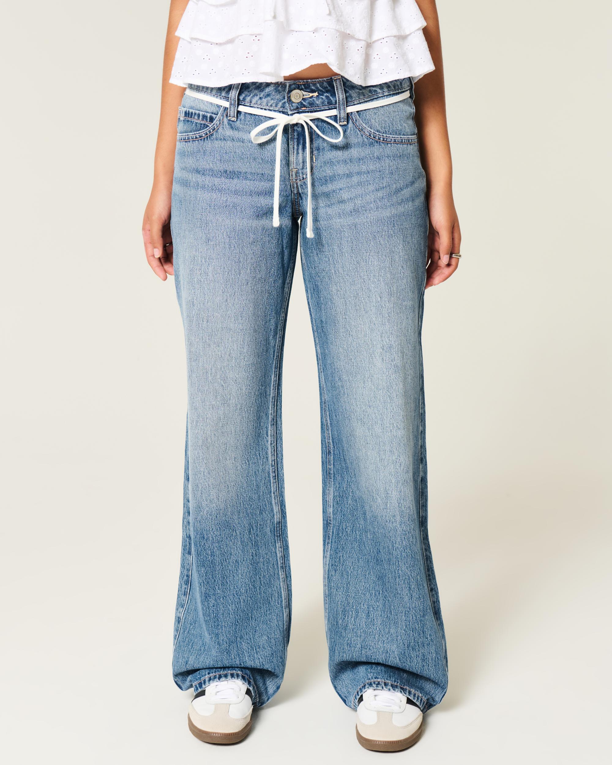 Low-Rise Medium Wash Shoestring Waist Baggy Jeans