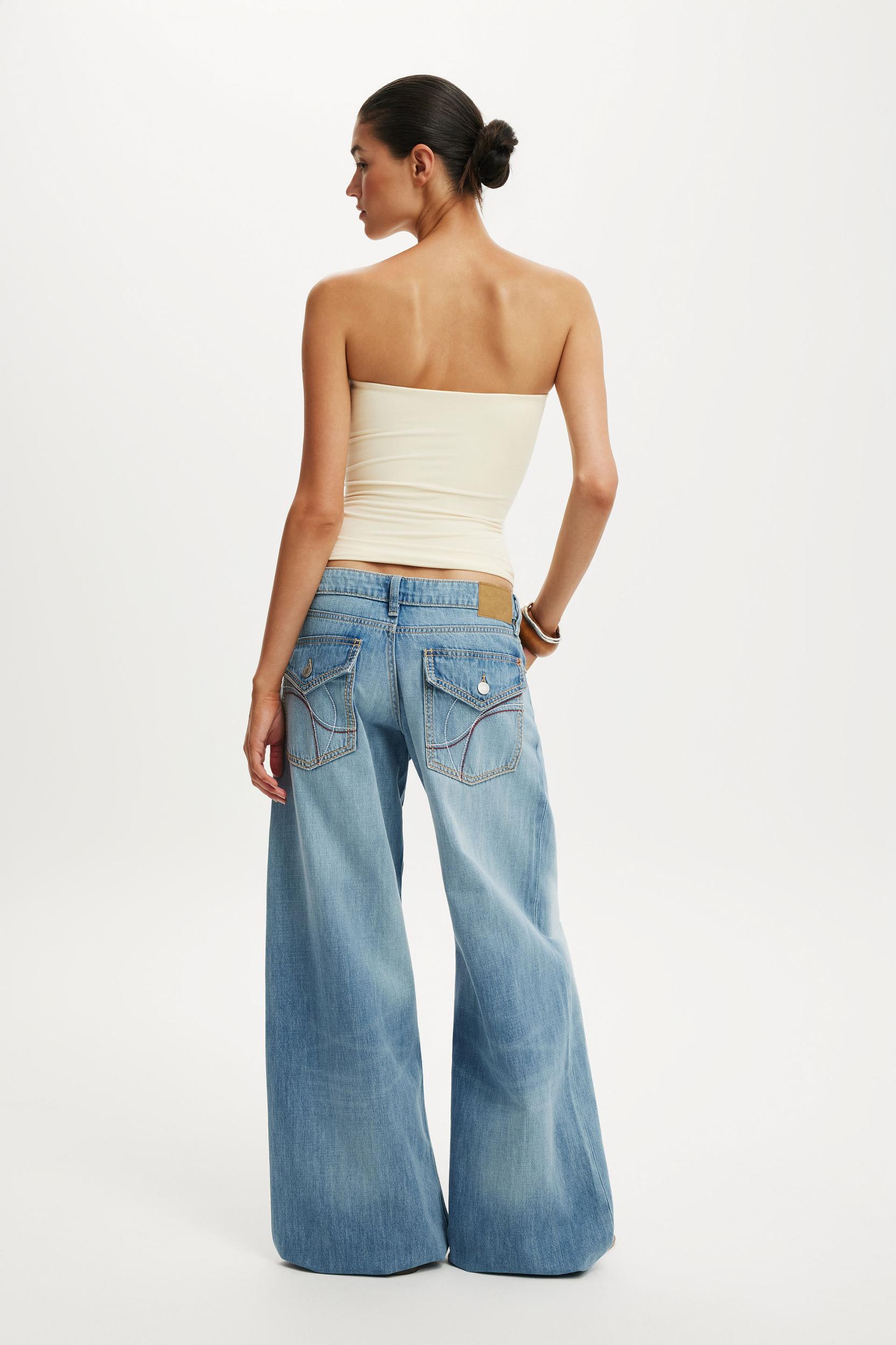 • Low-rise fit that sits on the hips • Snug through the butt, relaxed through the leg • Full-length wide leg silhouette • 86cm inleg length • Made from soft, mid-weight denim with zero stretch • Fits true to size. Consider sizing up for a more relaxed fit.
