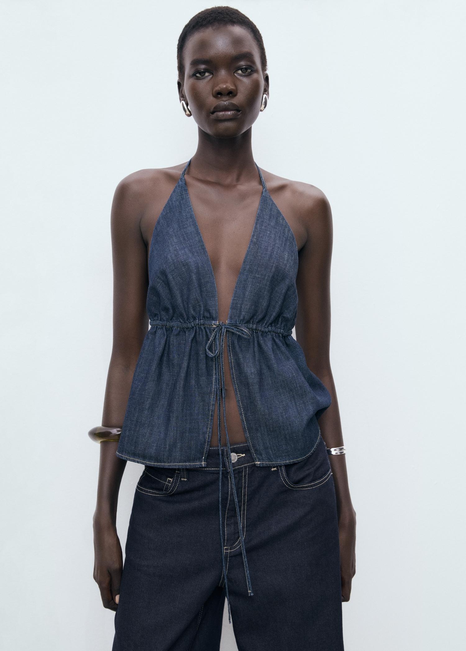 Wide-leg denim pants with frayed waist - Women | MANGO USA