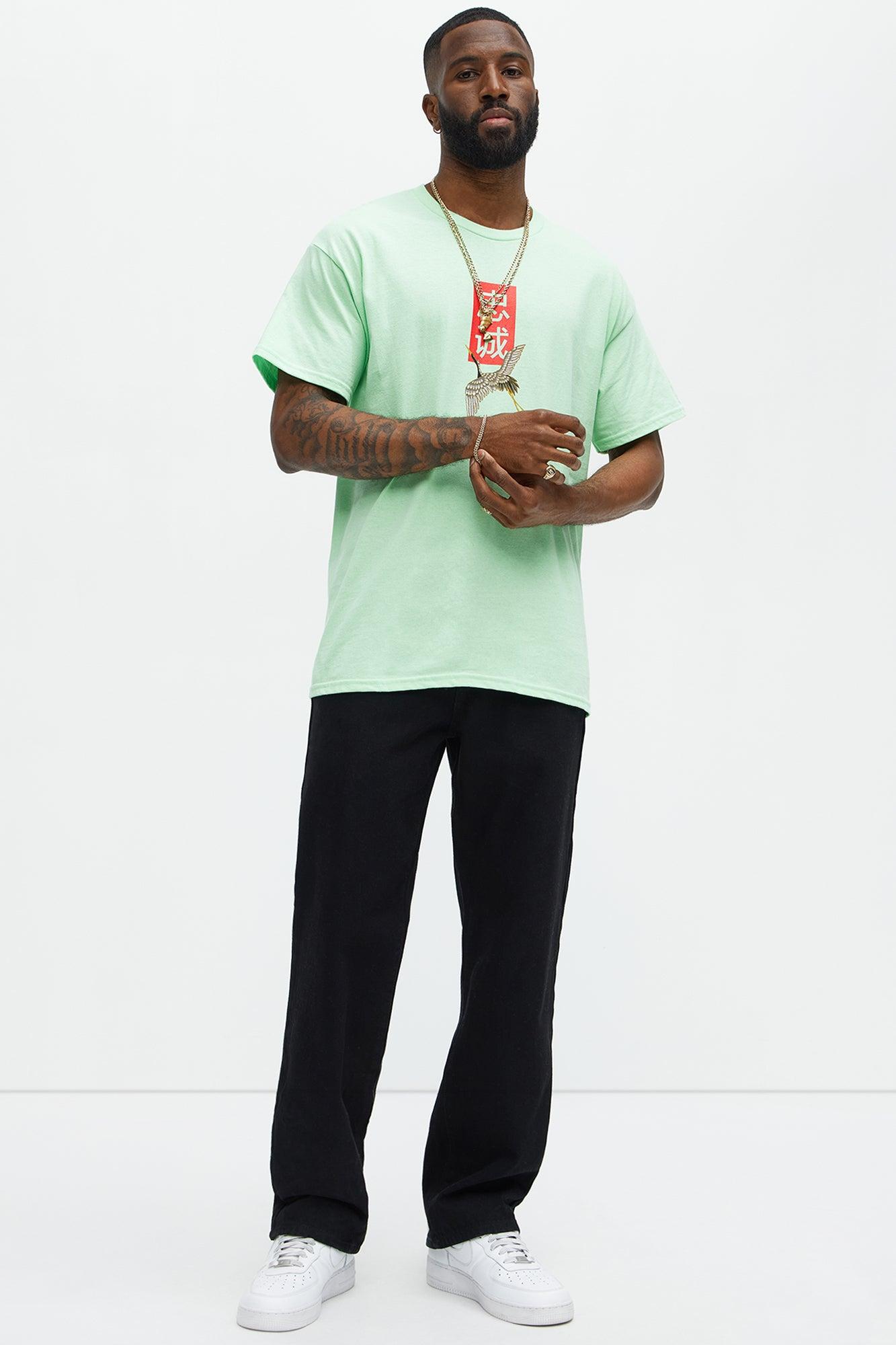 Model Height: 6'4 - Wearing Large Big & Tall: Height 6'5 - Wearing XXXL Available In Black And Mint. Crew Neck Short Sleeve Screen Print 100% Cotton Disclaimer: Due To The Printing Process A Difference In Saturation May Occur Each Garment Is Unique Imported