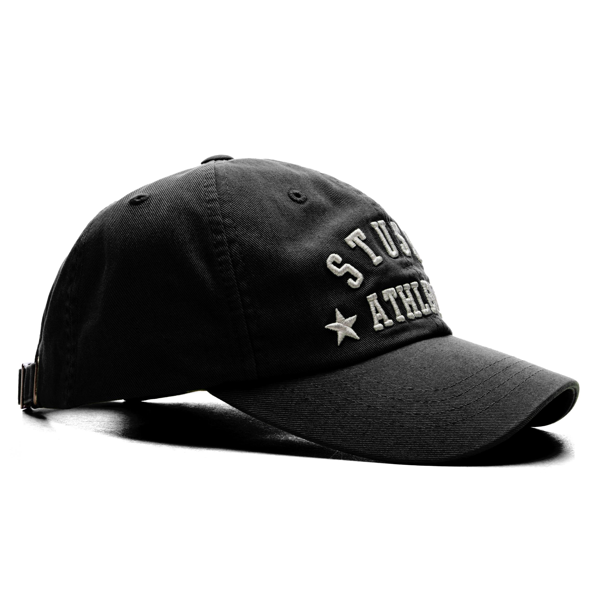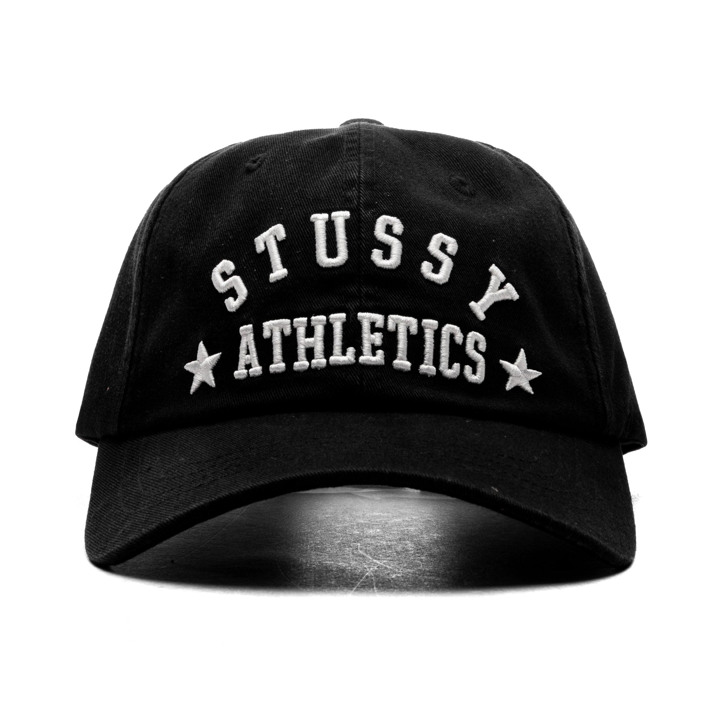 The Stüssy LP Athletics Strapback Cap combines style and comfort, making it an essential addition to any wardrobe. Crafted from cotton twill, this unstructured 5-panel cap offers a relaxed fit suitable for everyday wear. The front features the signature Stüssy athletics logo embroidery. 100% Cotton Low profile 5-panel cap Unstructured crown Pre-curved brim Mesh panels Strapback closure with metal tri-glide Cotton twill sweatband Embroidered Stüssy athletics logo Style No: 1311178-BLAC
