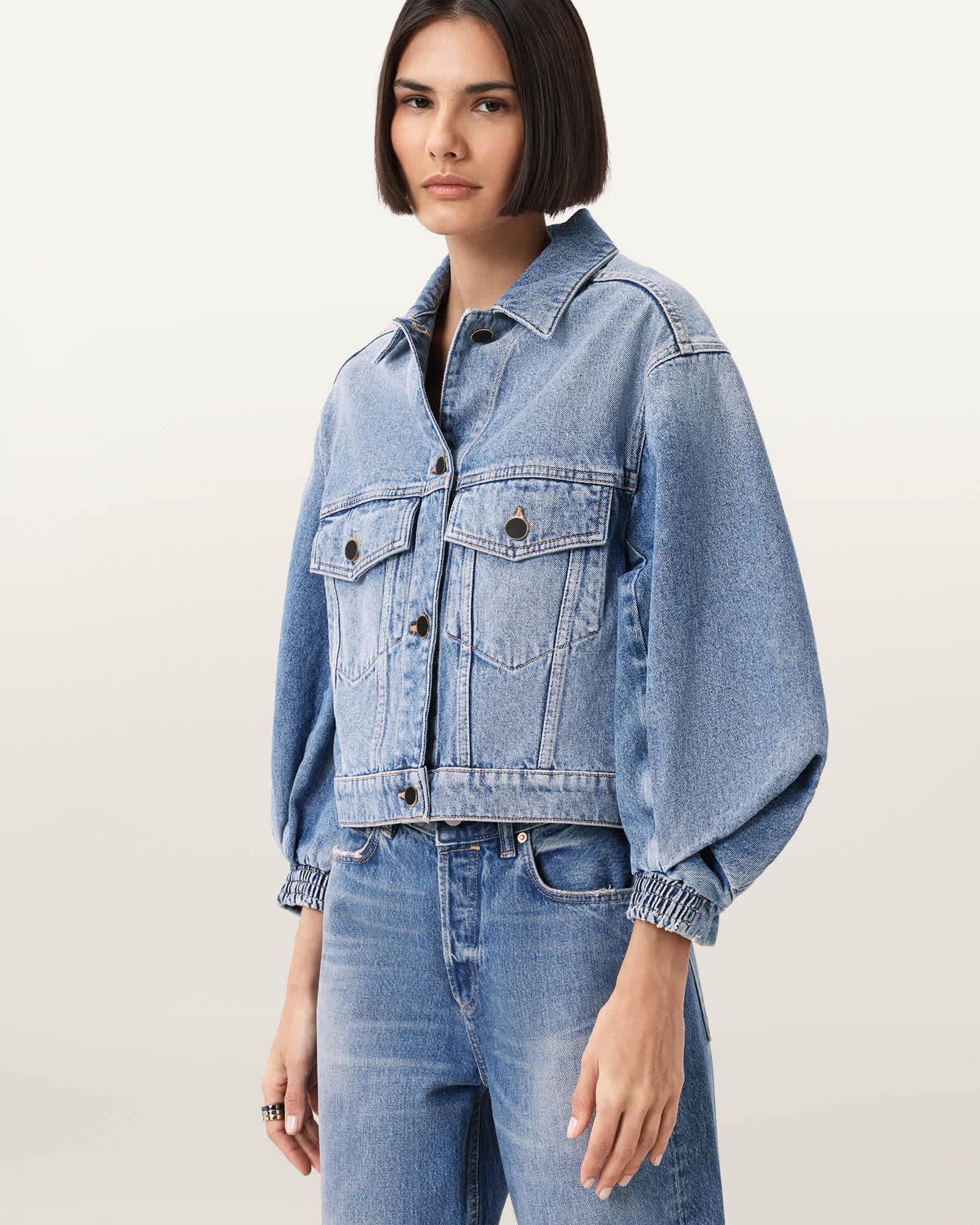Luca Cropped Denim Jacket Mid Indigo | ALLSAINTS US