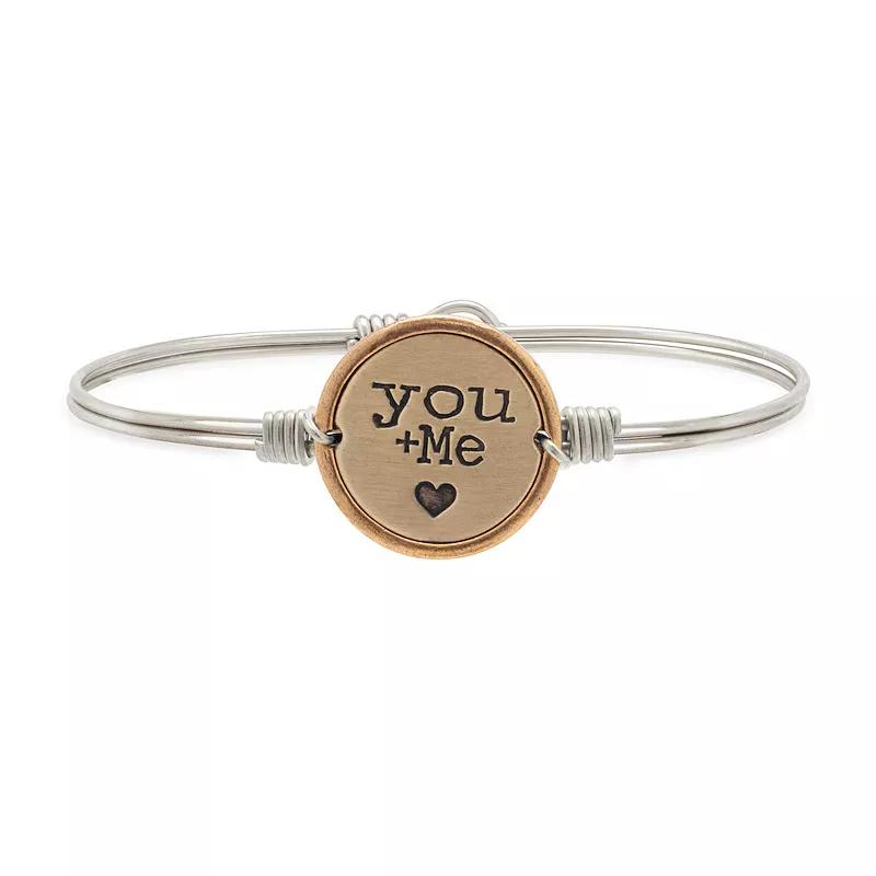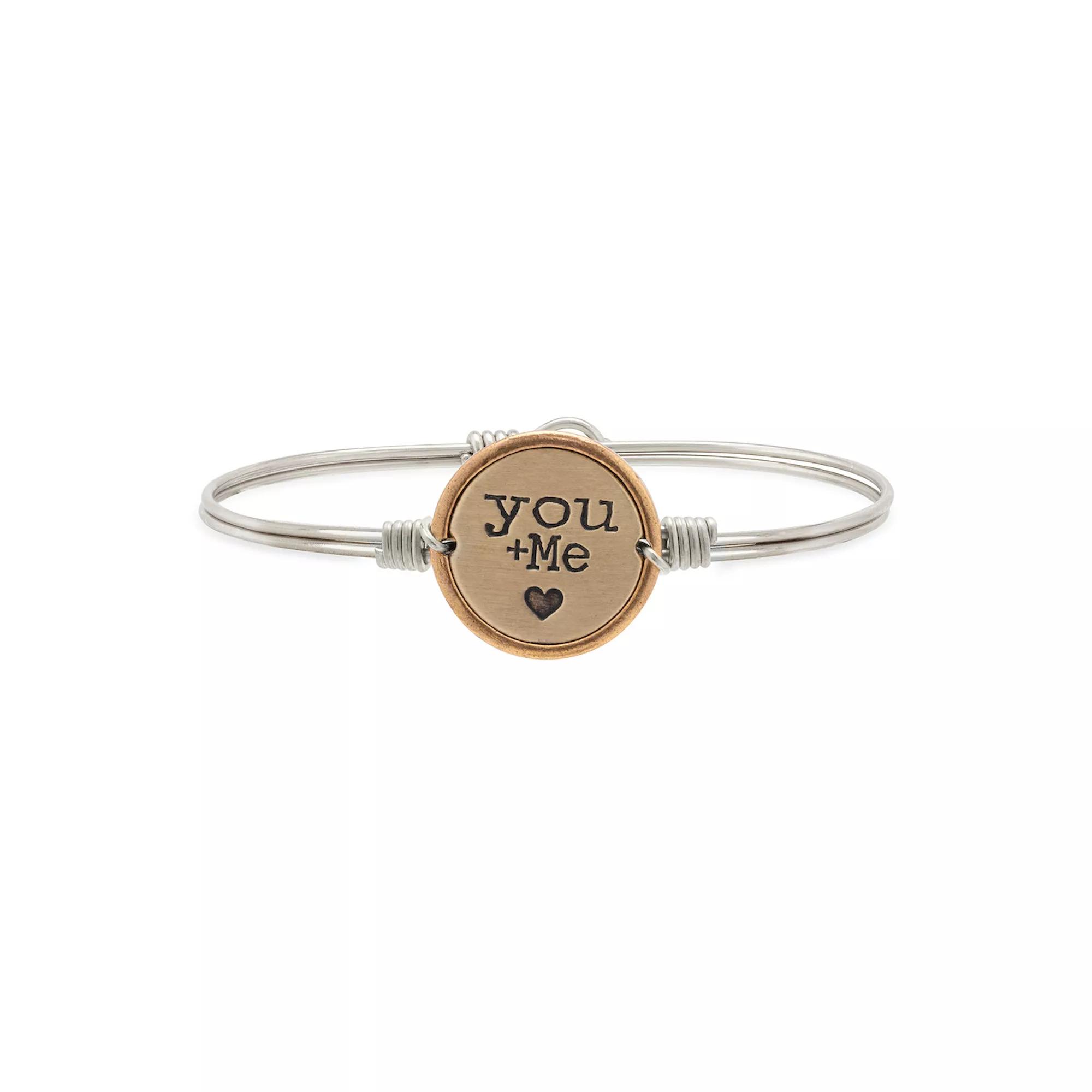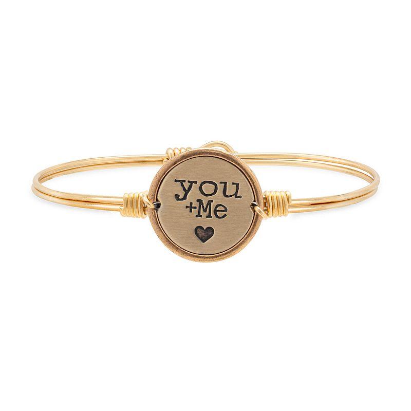 Pals, buddies, partners for always. Nothing captures the beauty of us like the Luca + Dani You + Me bangle, styled in the simplest (and sweetest) of terms. A classic coin medallion rises to keepsake status with meaningful text detail and a delicate heart icon. Pals, buddies, partners for always. Nothing captures the beauty of us like the Luca + Dani You + Me bangle, styled in the simplest (and sweetest) of terms. A classic coin medallion rises to keepsake status with meaningful text detail and a delicate heart icon. Length: 6.5 in., 7 in. Metal: brass Plating: gold tone, silver tone Finish: satin Packaging: boxed Size: 6.5. Gender: female. Age Group: adult. Material: Gold Plate.