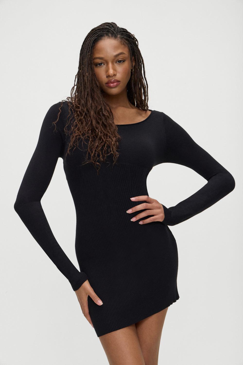 The Luca knit mini dress features ribbed detailing and lightweight knit construction. With its mini length, striped pattern, and wide neck, this dress will make a statement at any event on your calendar. Details Exaggerated long sleeves Boat neck design Fabric 80% Viscose + 20% Nylon Knit Model Size & Fit This style runs true to size Angela is wearing a size Small Height 5' 11" (180cm) Bust 33" (84), Waist 22” (56.5cm), Hips 34” (86.5cm)