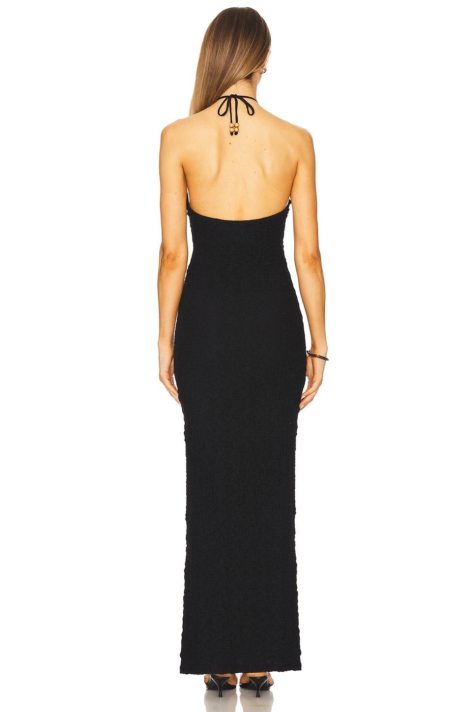 60% cotton, 37% nylon, 3% spandex. Hand wash cold. Unlined. Halter self-tie closure. Front keyhole accent. Crinkle crepe fabric with side slit design. Made in China. Revolve Style No. LSPA-WD494. Manufacturer Style No. LUCDR25. Plant Based: Fabric: 100% Cotton.